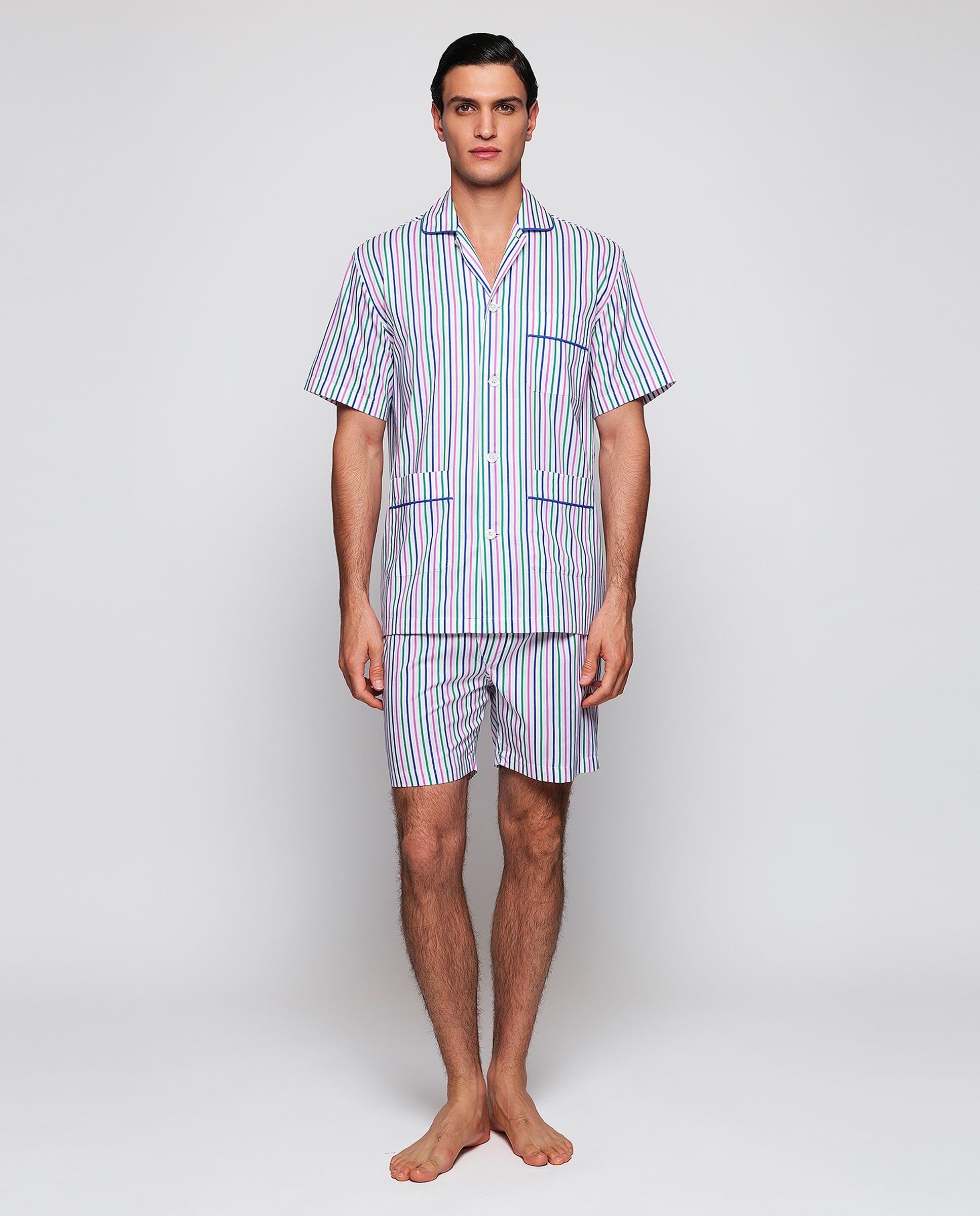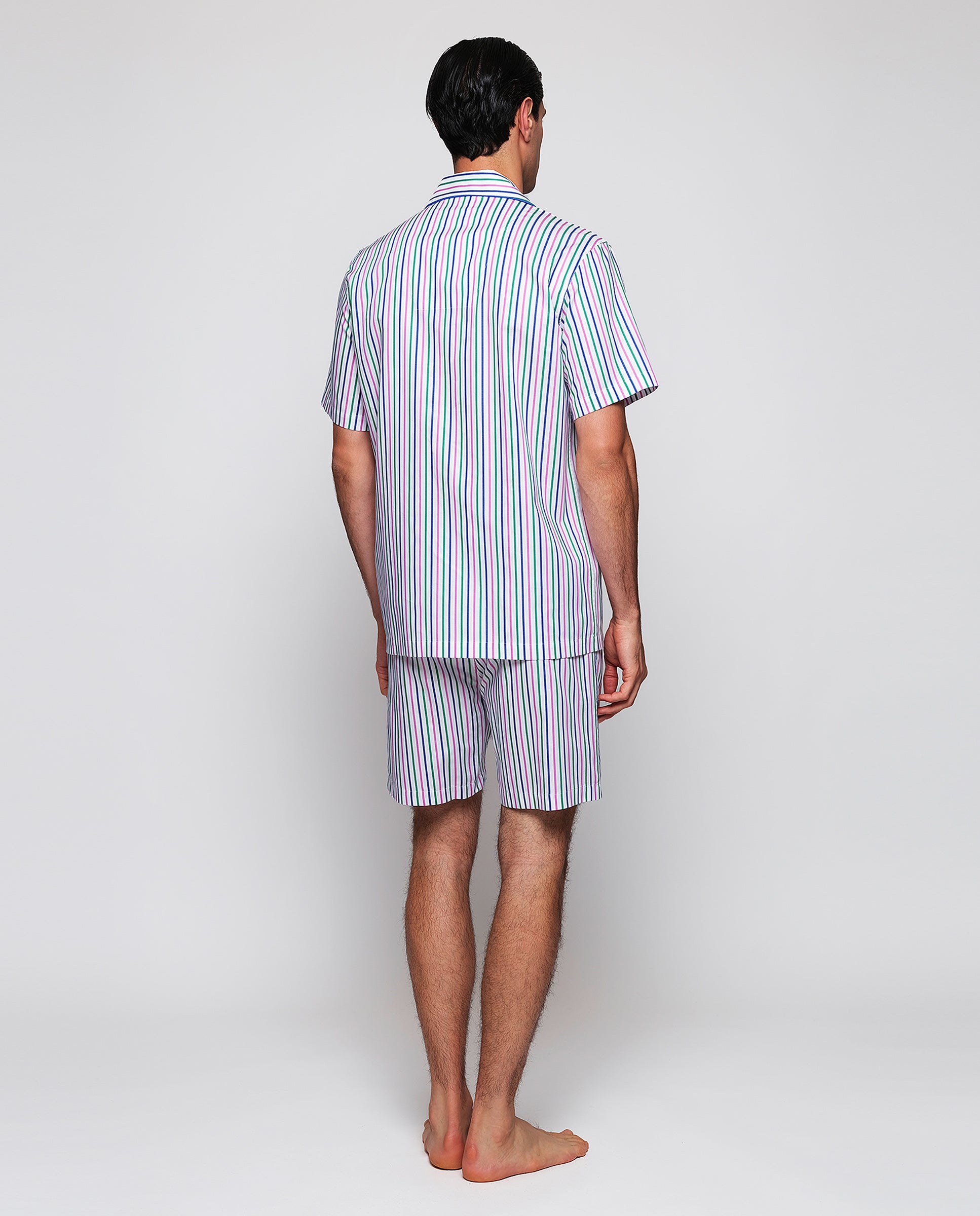 Pijama corto rayas rosa, verde y azul