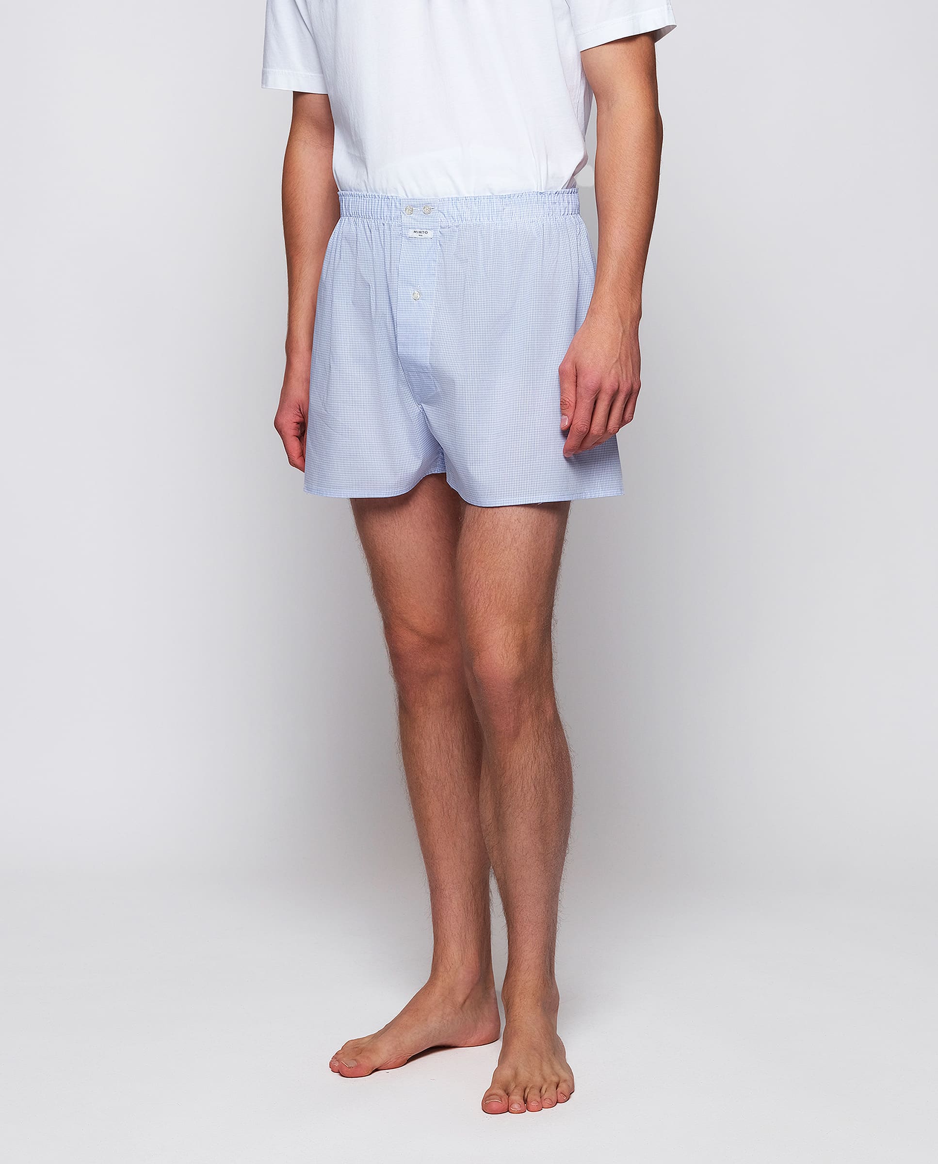 Boxer microcuadro azul y blanco de algodón