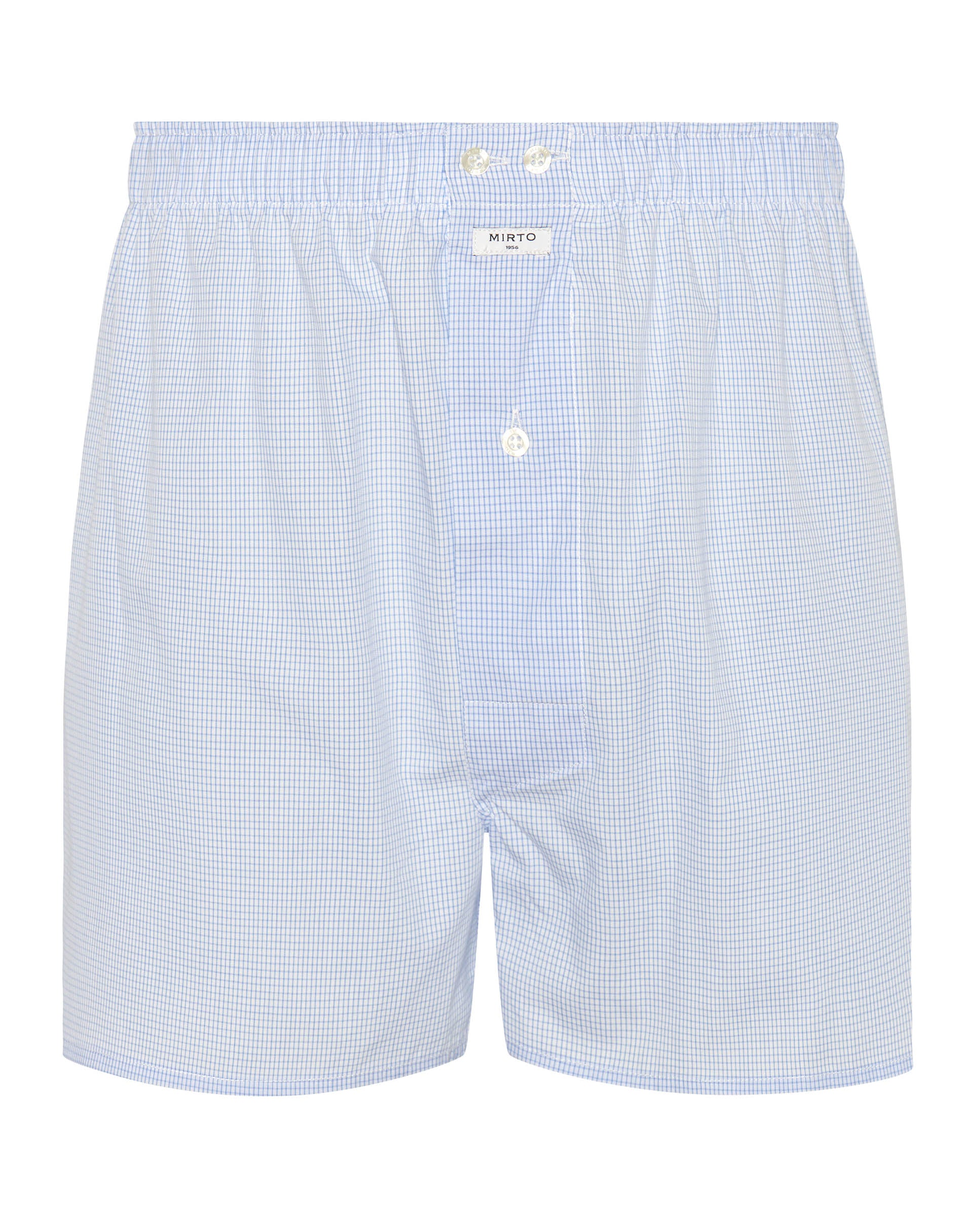 Calzoncillo estilo bóxer de microcuadro 100% algodón, cintura elástica forrada de felpa, cierre con botones y parte trasera con corte americano y doble costura francesa.