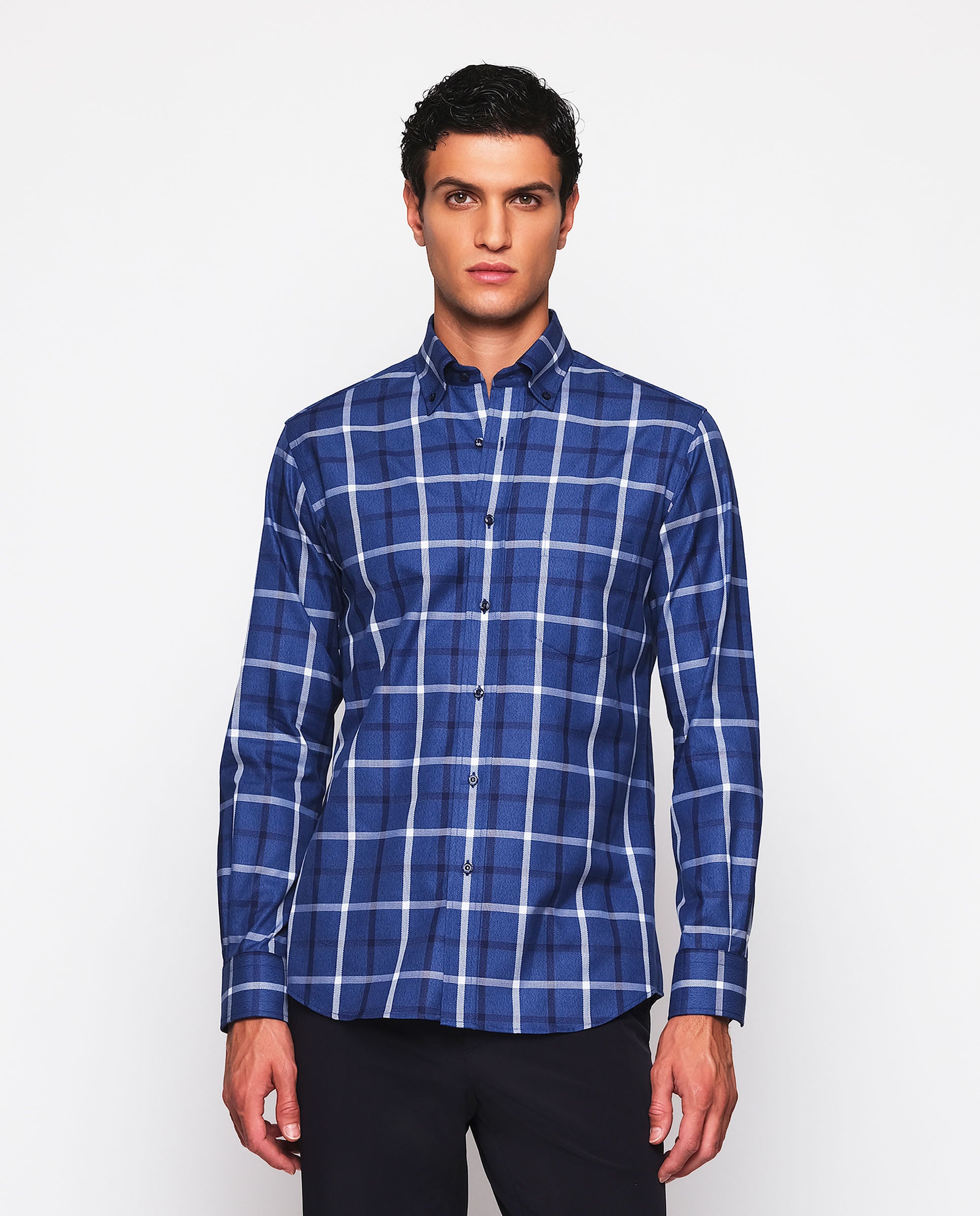 Camisa casual de cuadros 100% algodón, estructura twill e hilatura melange. Cuello con botones, bolsillo en pecho, manga larga, puño con doble botón, classic fit. Evoca ambientes otoñales, y siente la acogedora sensación de los estampados a cuadros.