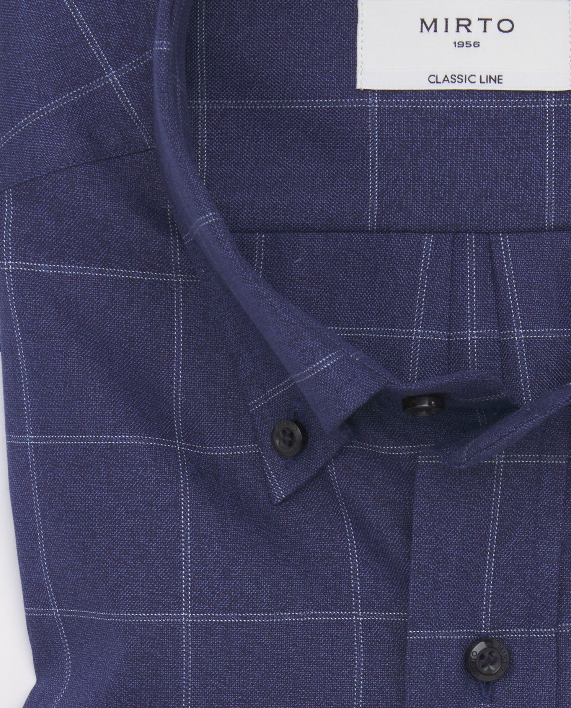 Camisa casual azul marino cuadros blancos de algodón
