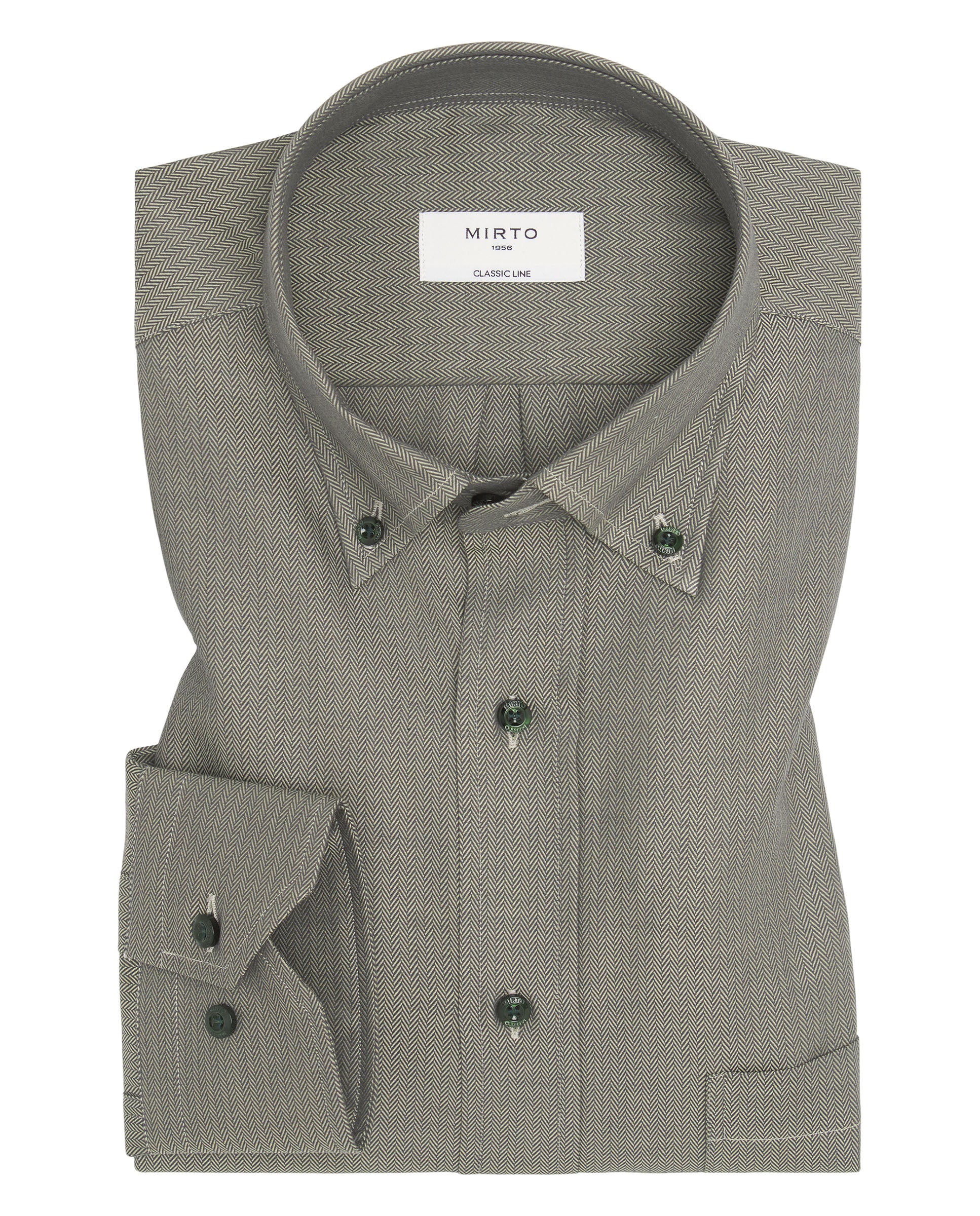 Camisa casual 100% algodón con estructura de espiga, cuello con botones, bolsillo en pecho, manga larga, puño con doble botón, classic fit. Una estructura sartorial. Equilibra estilos y actualiza tus opciones con distinción.