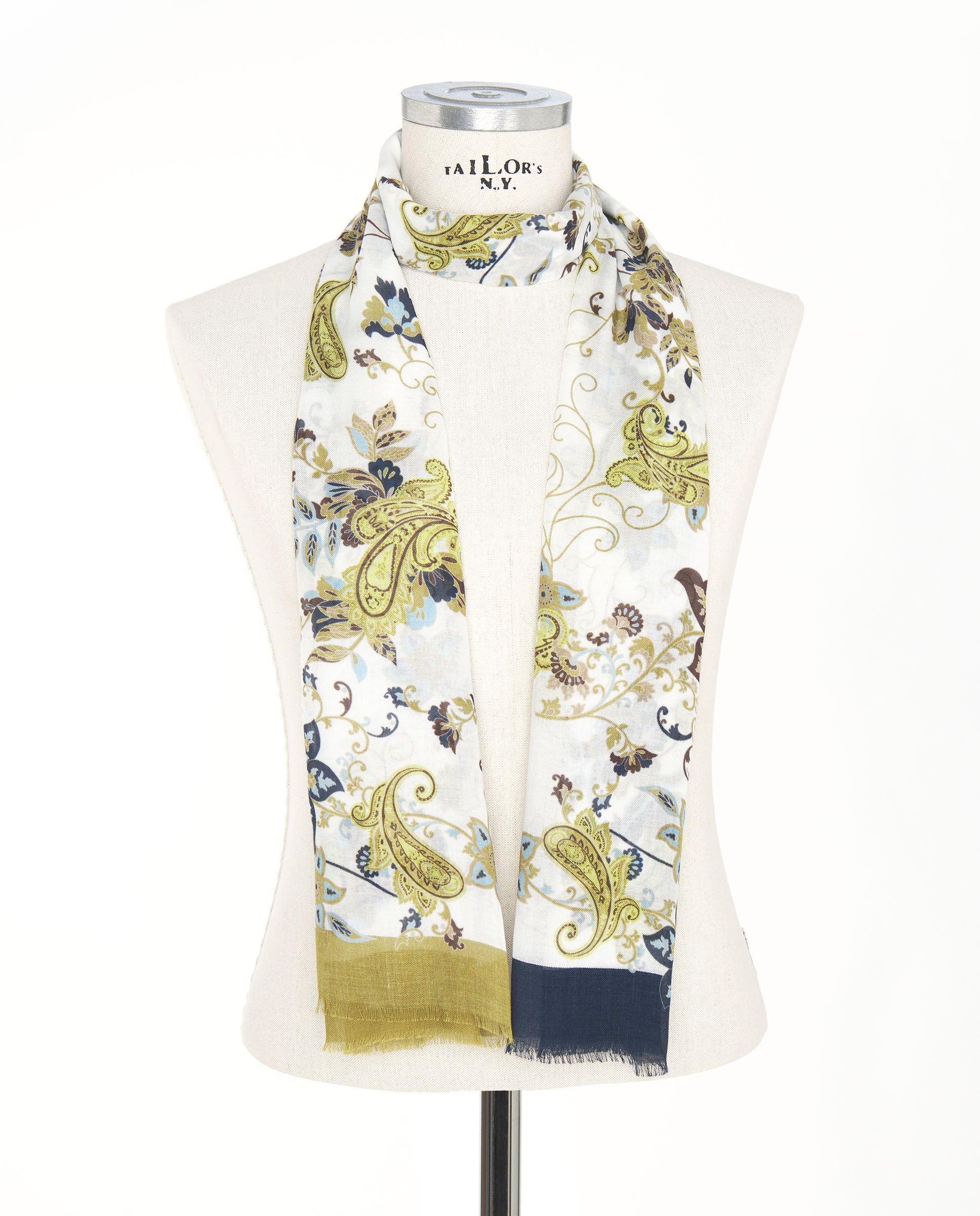 Un accesorio que abriga, aporta color y resalta estilos personales para looks semi-formales. Combina con la moda smart casual de MIRTO. Foulard estampado 100% algodón. Medidas 60cmx180cm.