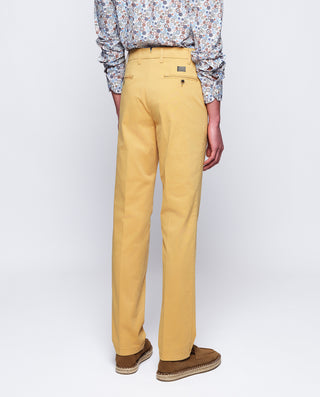 Pantalón sport de algodón sin pliegues, con bolsillo francés y relojera. Tiene el cierre de cremallera y dos botones, bolsillos traseros de ojal con botón. El pantalón tiene un pequeño porcentaje de elastán para darle un mayor grado de comodidad.