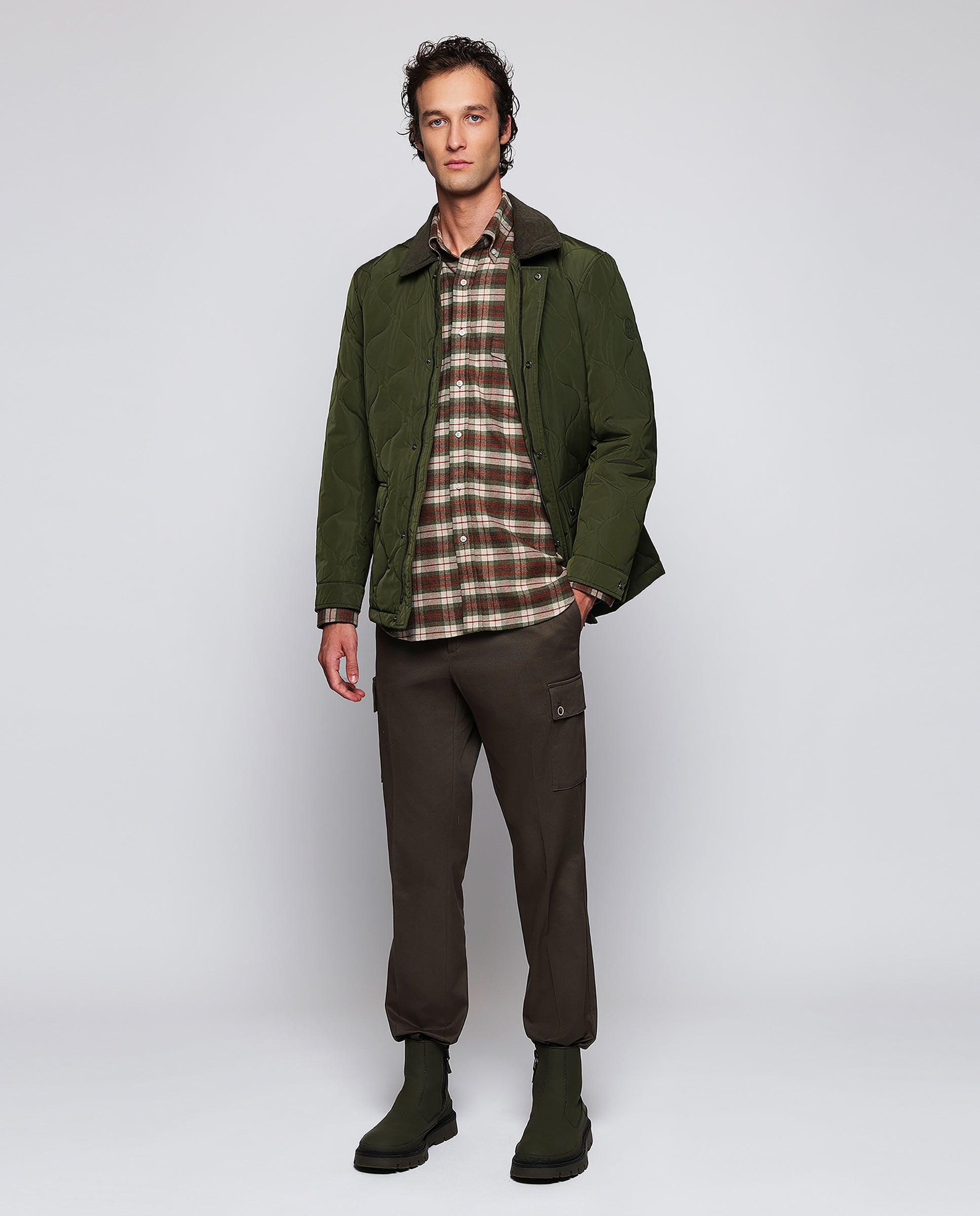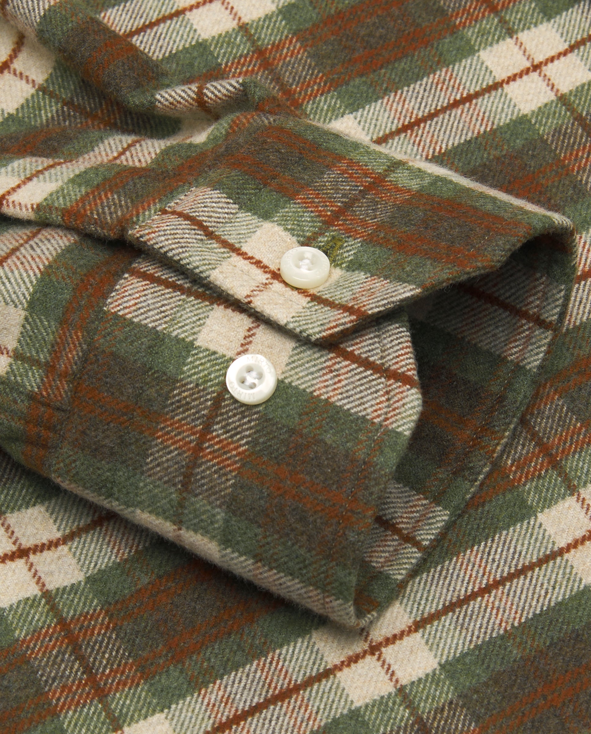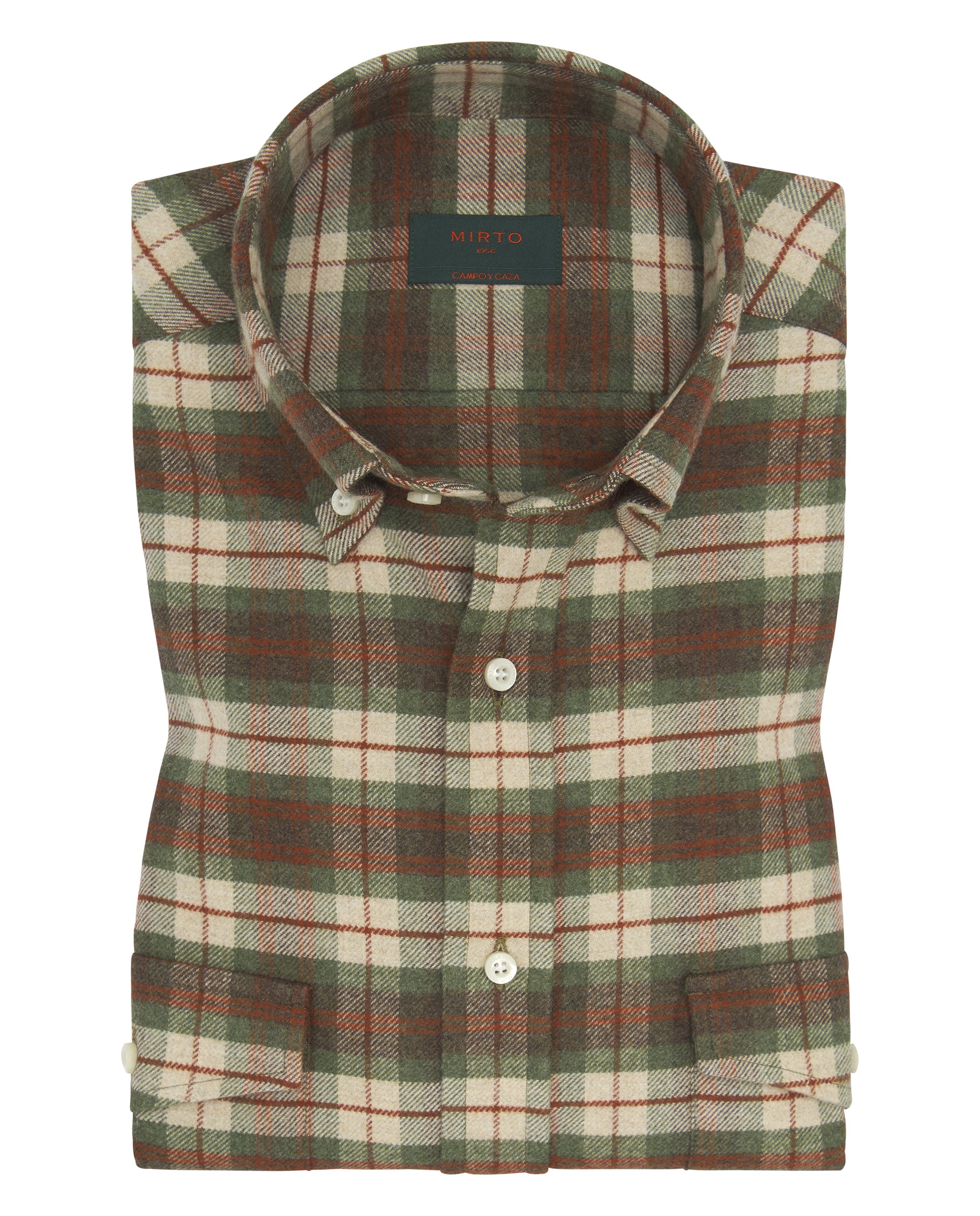 Camisa casual manga larga, dos bolsillos con tapetas, 100% algodón franela, cuello con botones y espalda con tablón central.