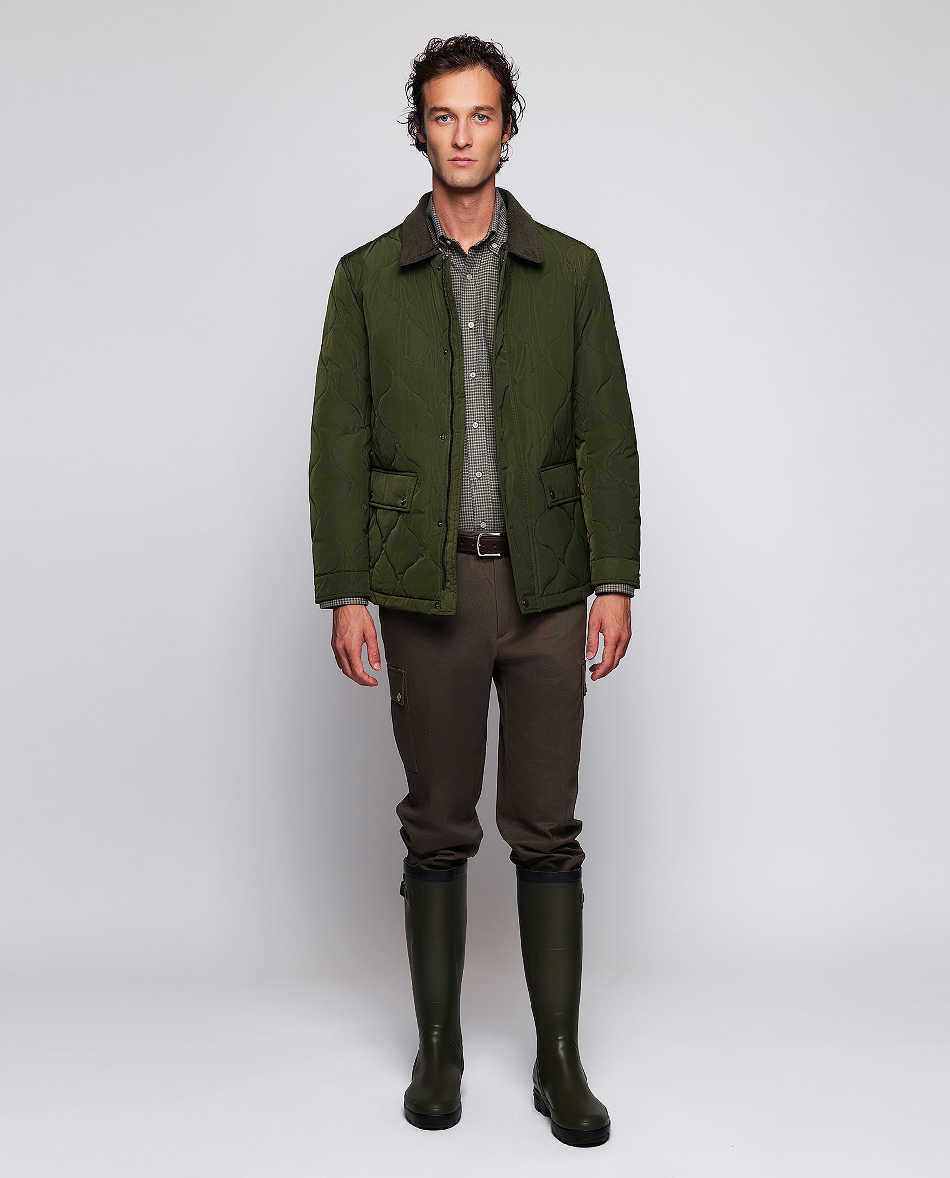 Camisa casual verde cuadros estructura twill