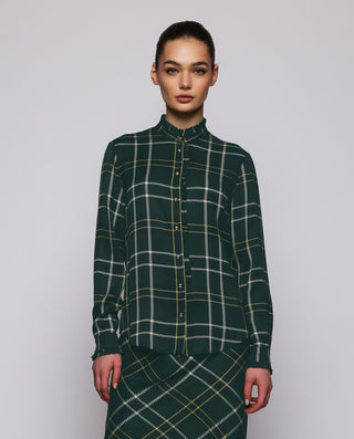 Falda midi verde estampado cuadros al biés. Cintura con elástico. Interior falda midi lencera con goma. Fit fluido con vuelo. Cuadros neutros en armonía con el favorecedor corte al biés. Tu estilo.