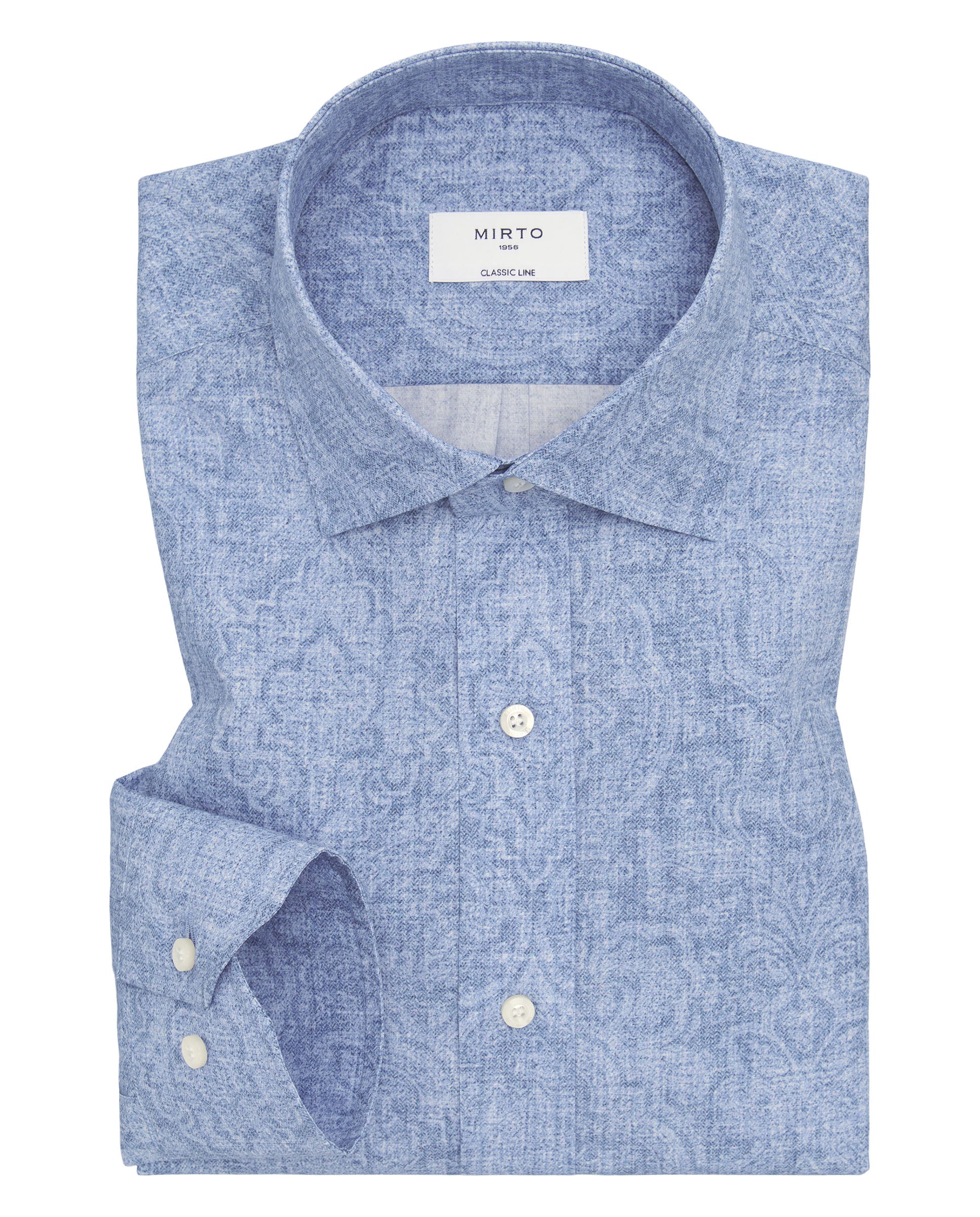 Camisa casual manga larga estampada, sin bolsillo, 100% Algodón, cuello italiano con varillas extraíbles, puños con doble botón, classic fit.