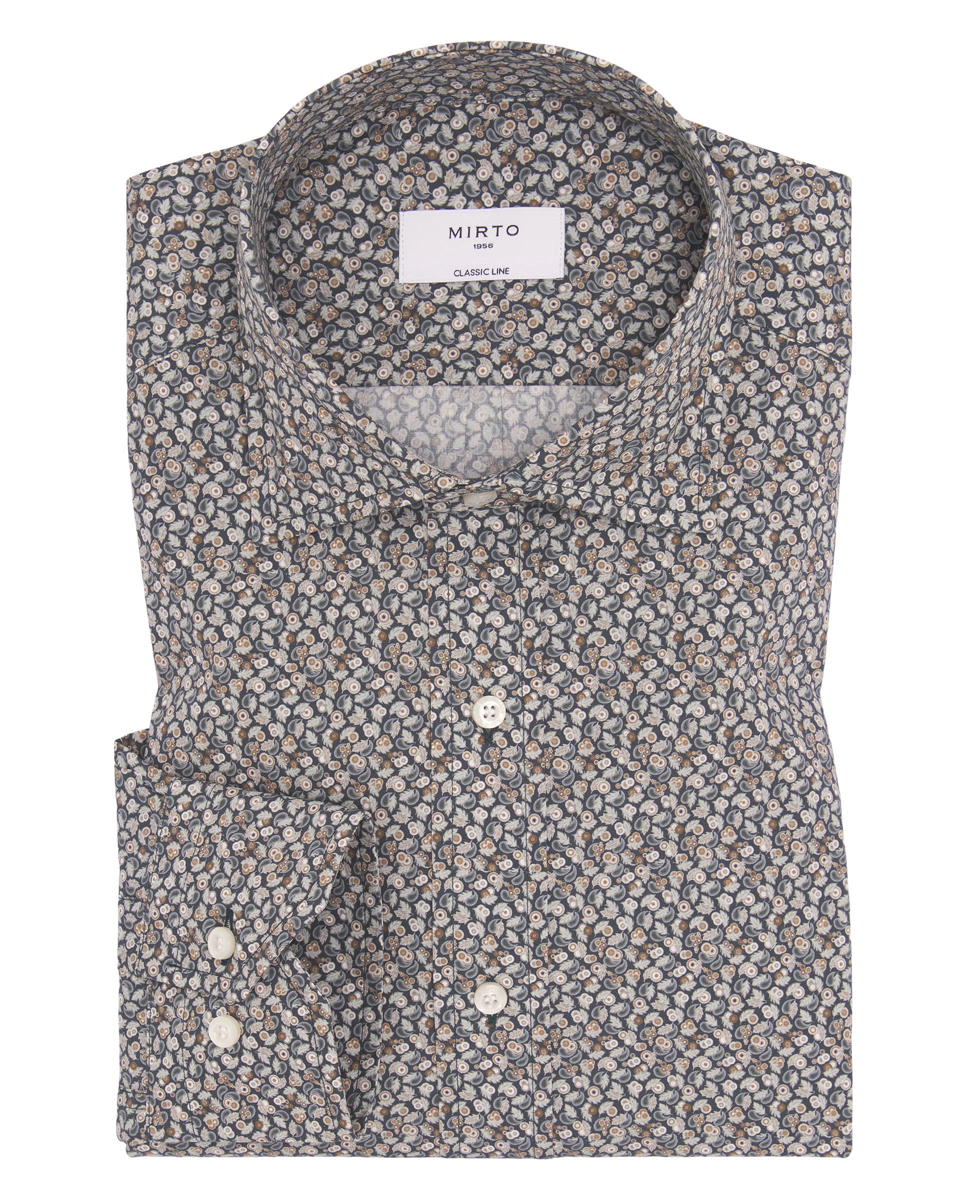 Camisa casual manga larga estampada, sin bolsillo, 100% Algodón, cuello italiano con varillas extraíbles, puños con doble botón, classic fit.