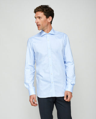 Camisa casual semi-entallada, manga larga lisa, sin bolsillo, algodón 100% con lavado suave, cuello italiano “soft” con varillas extraíbles y espalda lisa. Combínala con un pantalón chino o denim, ideal también con unas bermudas MIRTO para un look más desenfadado y veraniego.