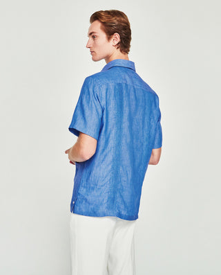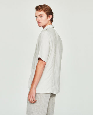 Guayabera 100% lino manga corta. Cuello con varillas extraíbles, cuatro bolsillos, delantero con jaretas, puño con doble botón, Classic fit. Una versión más cómoda y ligera de un clásico veraniego. Disponible en más colores.