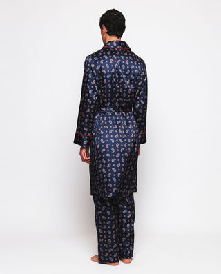 Pijama largo azul marino estampado paisley