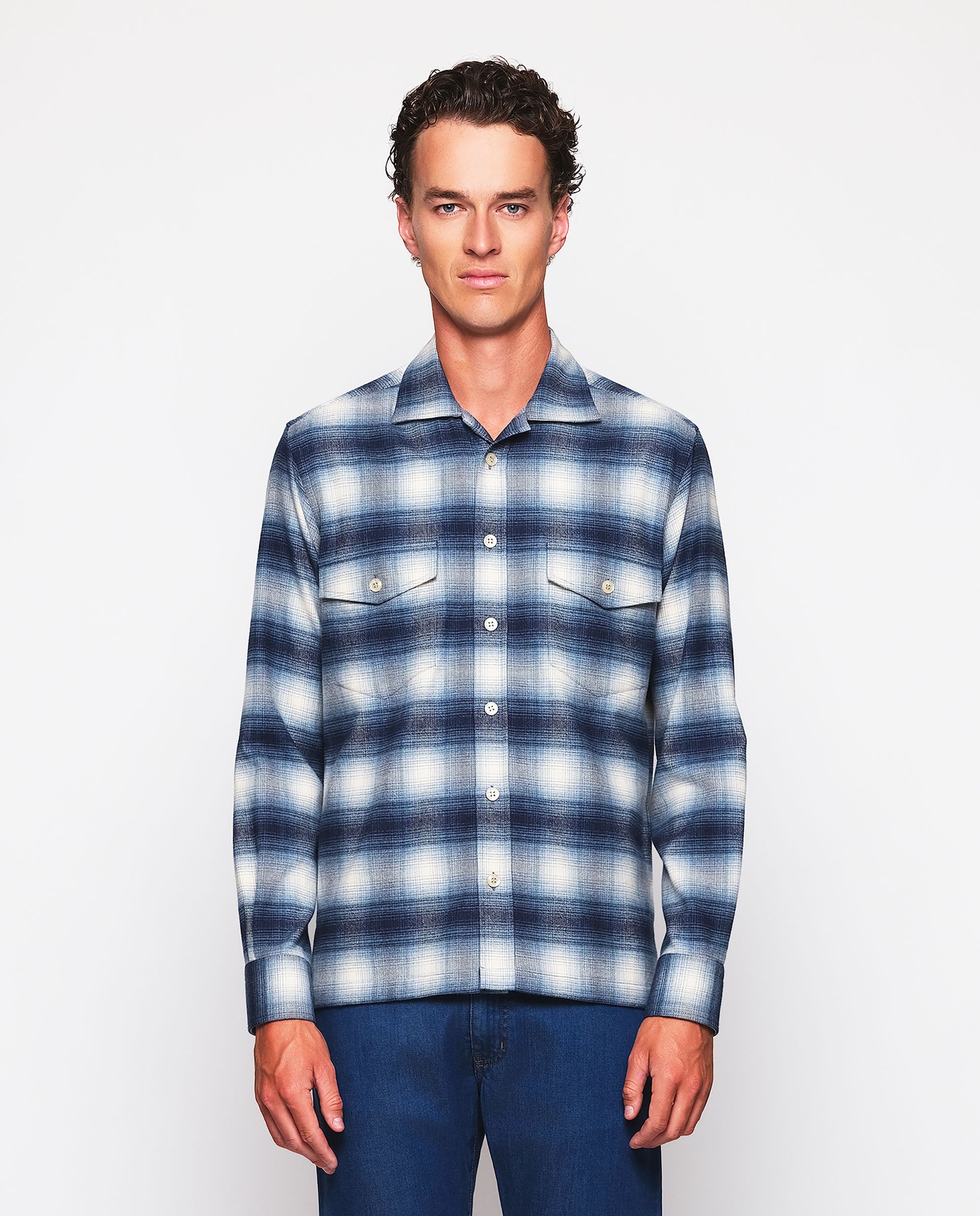 Sobrecamisa de cuadros 100% algodón de franela, cuello italiano sin tira, dos bolsillos con tapeta en pecho, manga larga, puño con doble botón, classic fit. Versión "casual" de la chaqueta o camisa para estilos informales y versátiles, sin pasar frío.
