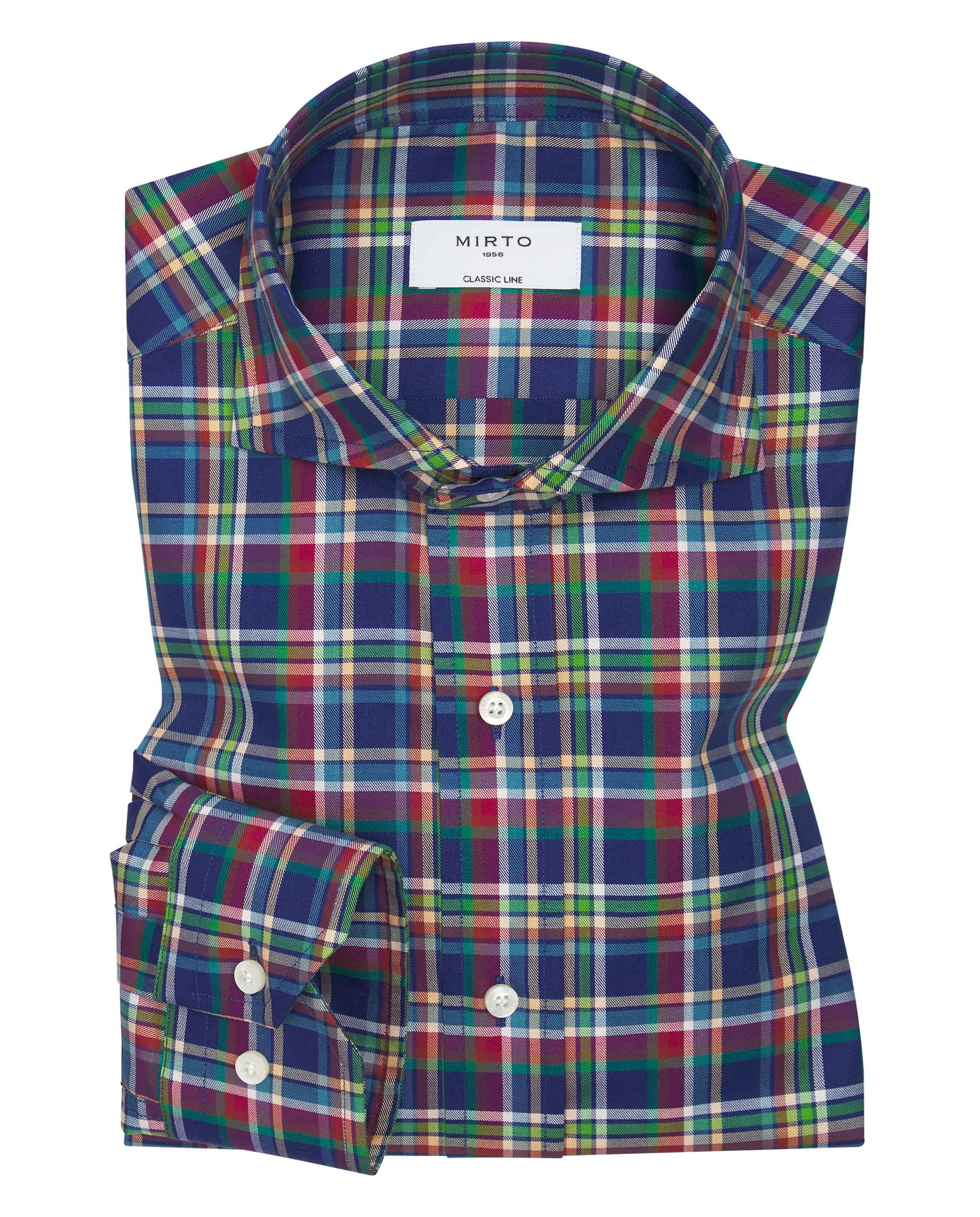 100% diagonal twill cotton plaid casual shirt. Soft spread collar with removable stays, no breast pocket, classic fit, flat back, long sleeves, cuffs with double buttonhole. Pair with MIRTO casual pants, knitwear & jackets for looks with authentic style.