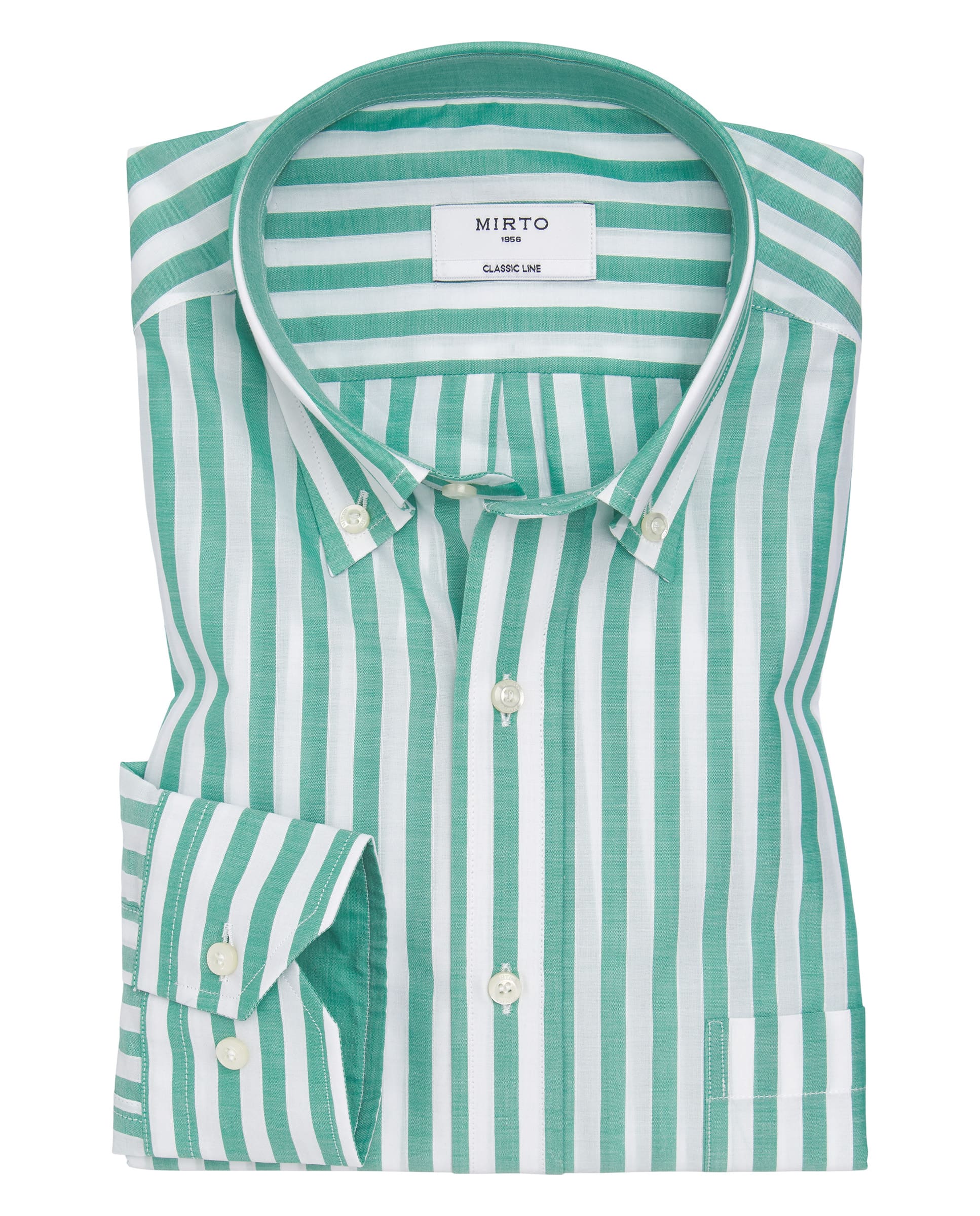 100% cotton striped casual shirt, button down collar, breast pocket, long sleeves, cuffs with double button, classic fit.