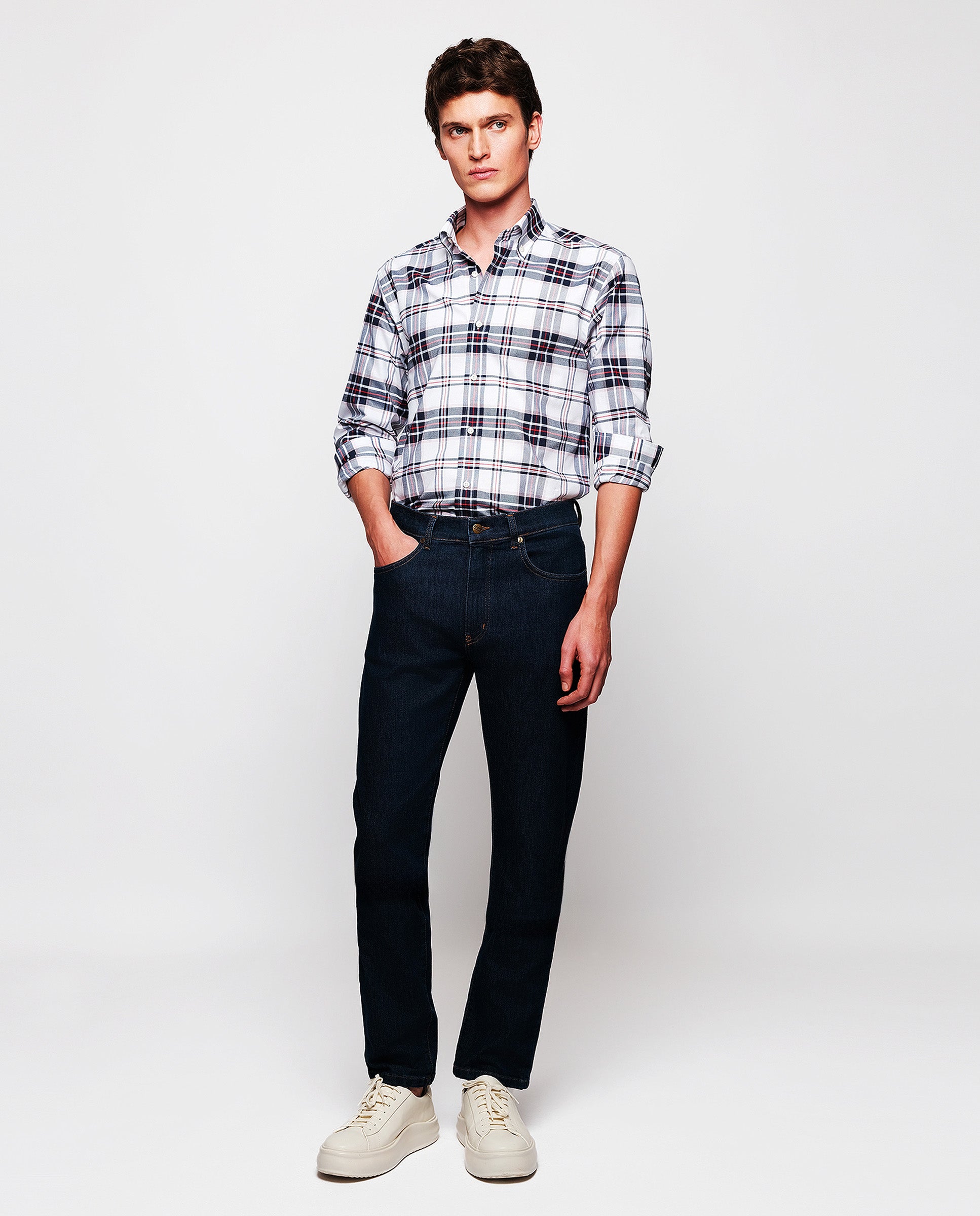 Graphic tones for casual looks, or styles for traveling and discovering new horizons. Combine with MIRTO fashion for options. 100% textured cotton casual shirt, button-down collar, breast pocket, long sleeves, cuffs with double button, classic fit.