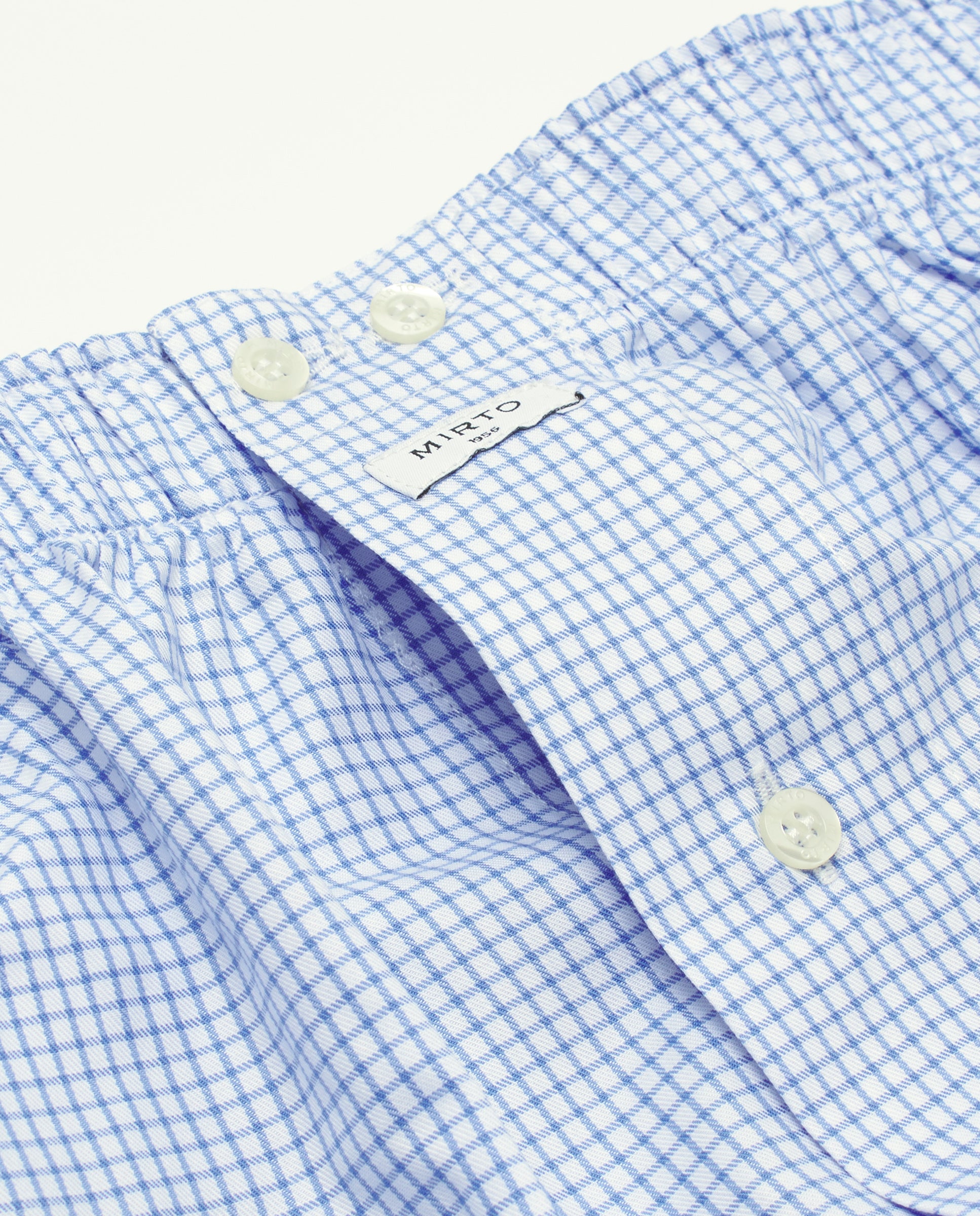 Plaid boxer shorts, 100% twill cotton, with American seam at the back. Plush-lined waistband for added comfort and a three-button closure.
