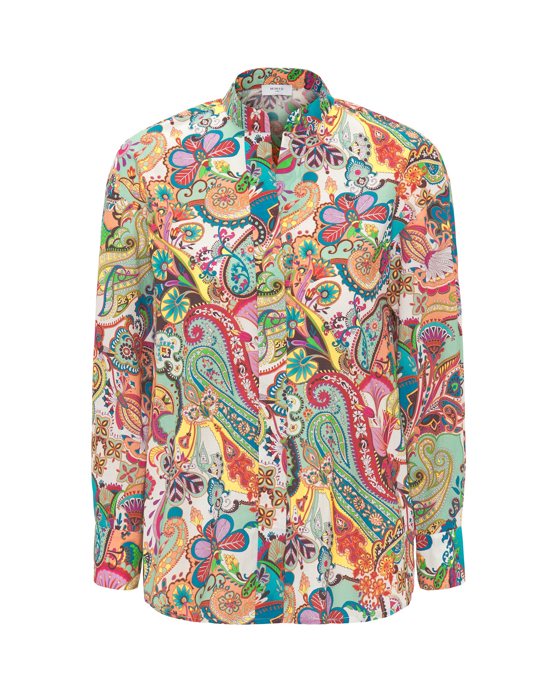 100% paisley print multicolor shirt. Neckband collar, hidden button closure, long sleeves with cuff. Straight fit.