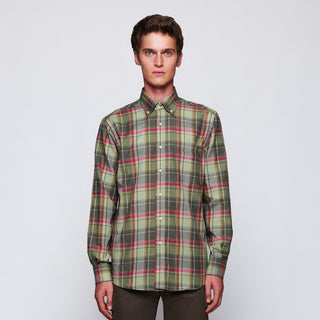100% cotton twill plaid casual shirt. Button down collar & breast pocket. Classic fit, long sleeves, cuffs with double buttonhole. A perfect shirt to pair with casual MIRTO shirts & pants for warming freetime countryside styles. A truly authentic garment.