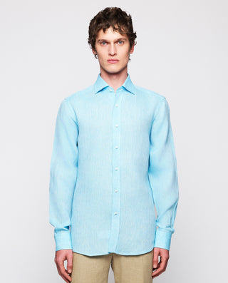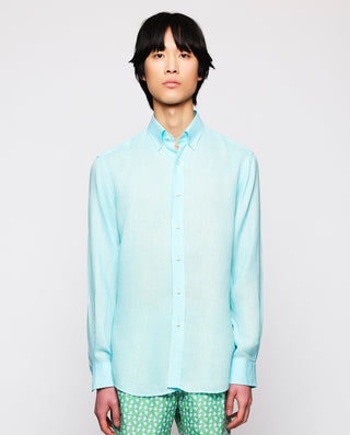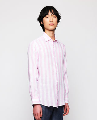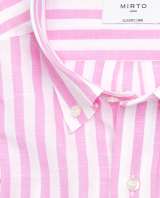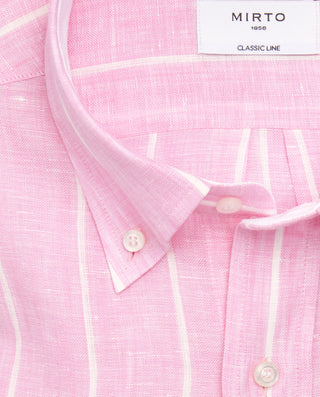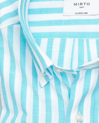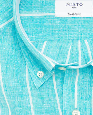 Casual Pinpoint Oxford cotton shirt with green stripes