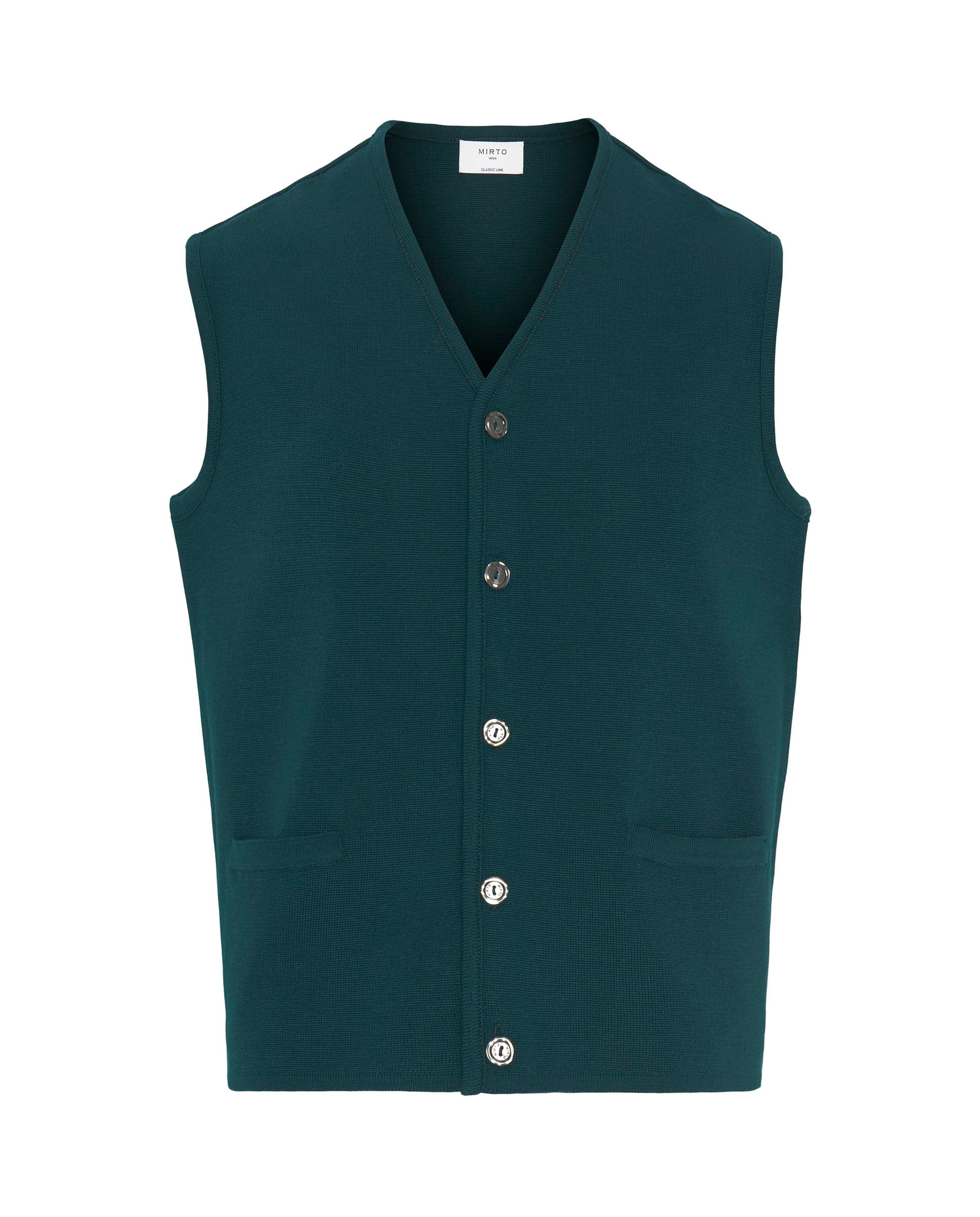 Knit waistcoat in wool & acrylic blend. Two pockets, button closure.