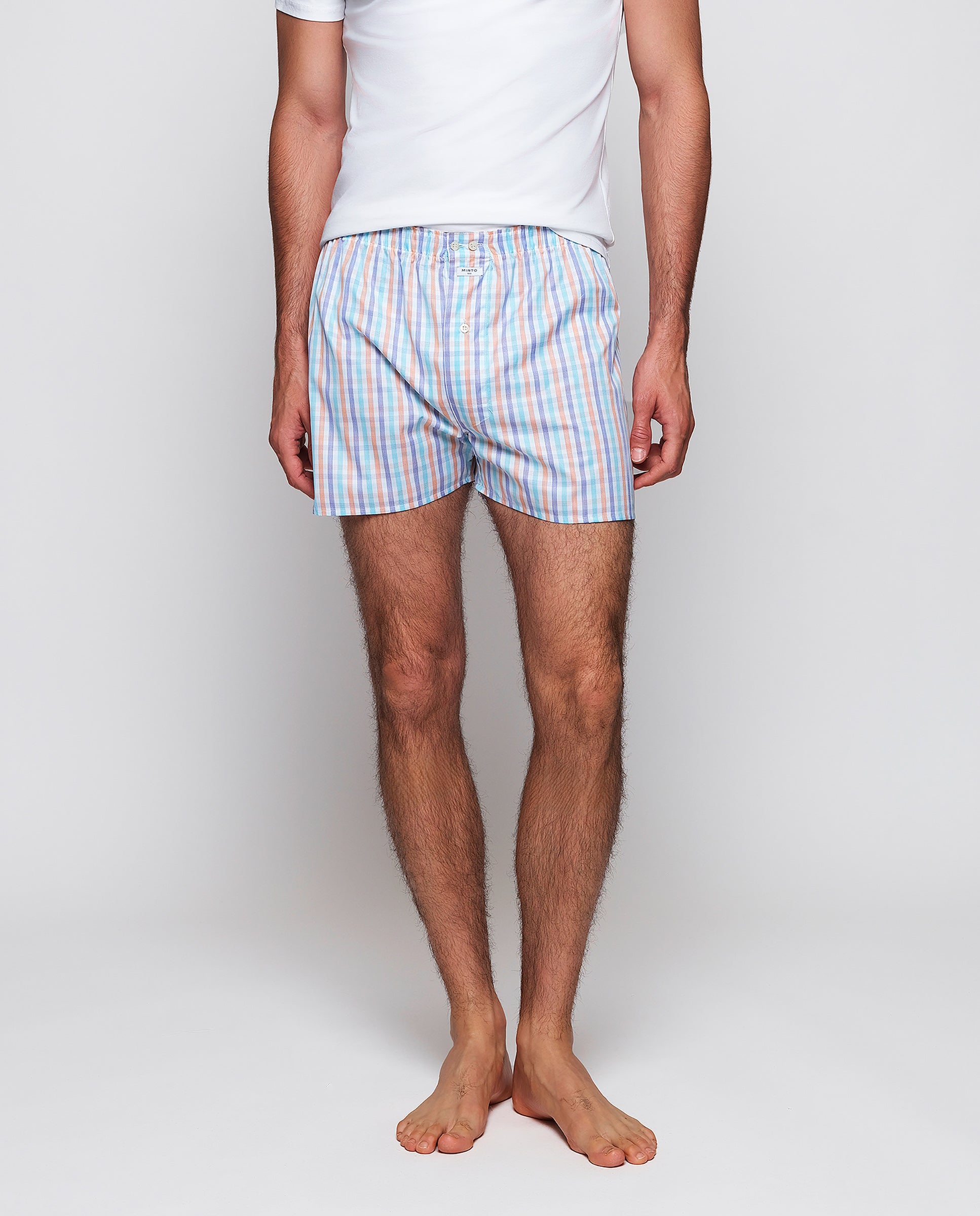100% cotton boxer shorts with button opening, fleece-lined waistband for added comfort. American seam in back.