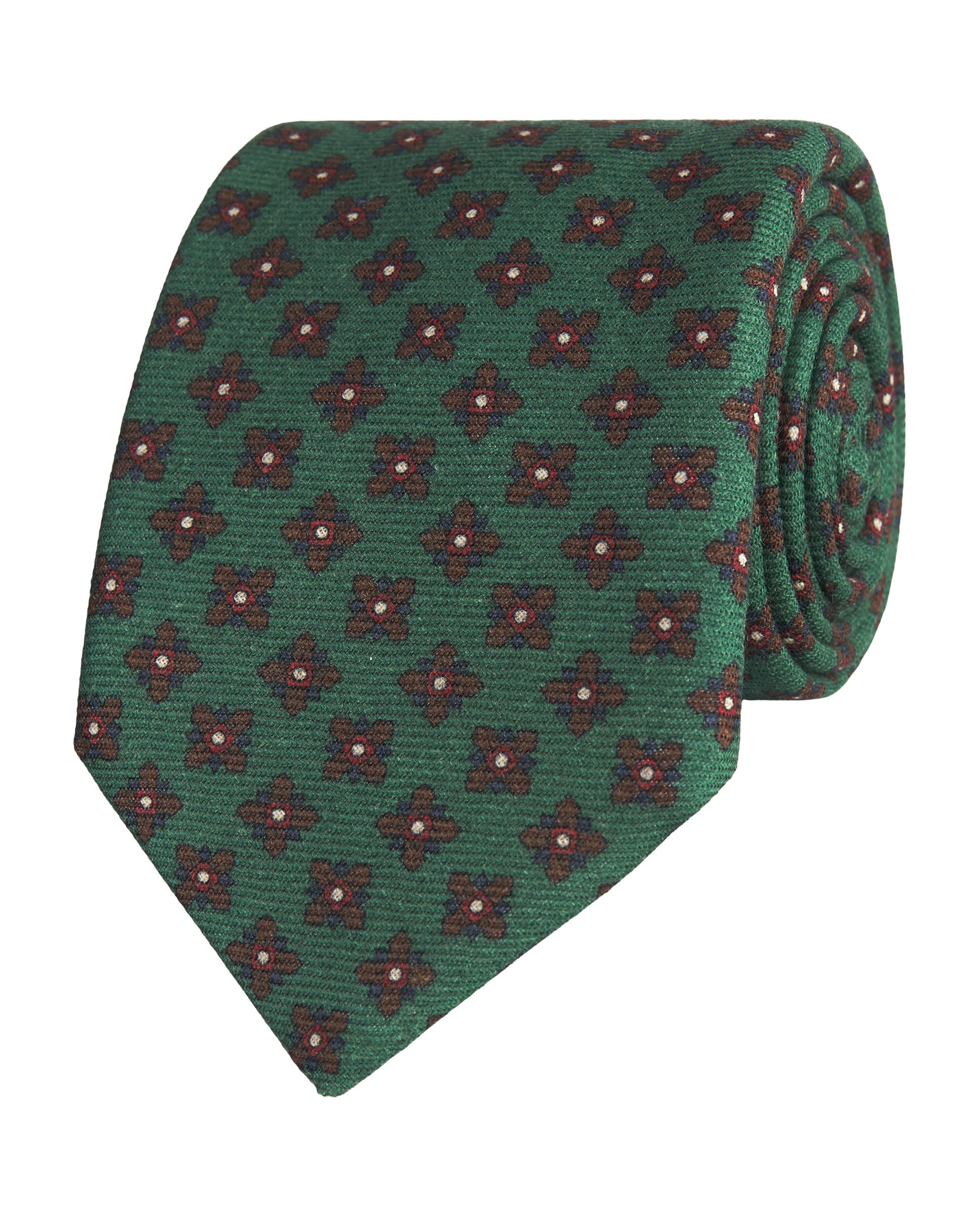 Green wool tie with floral print