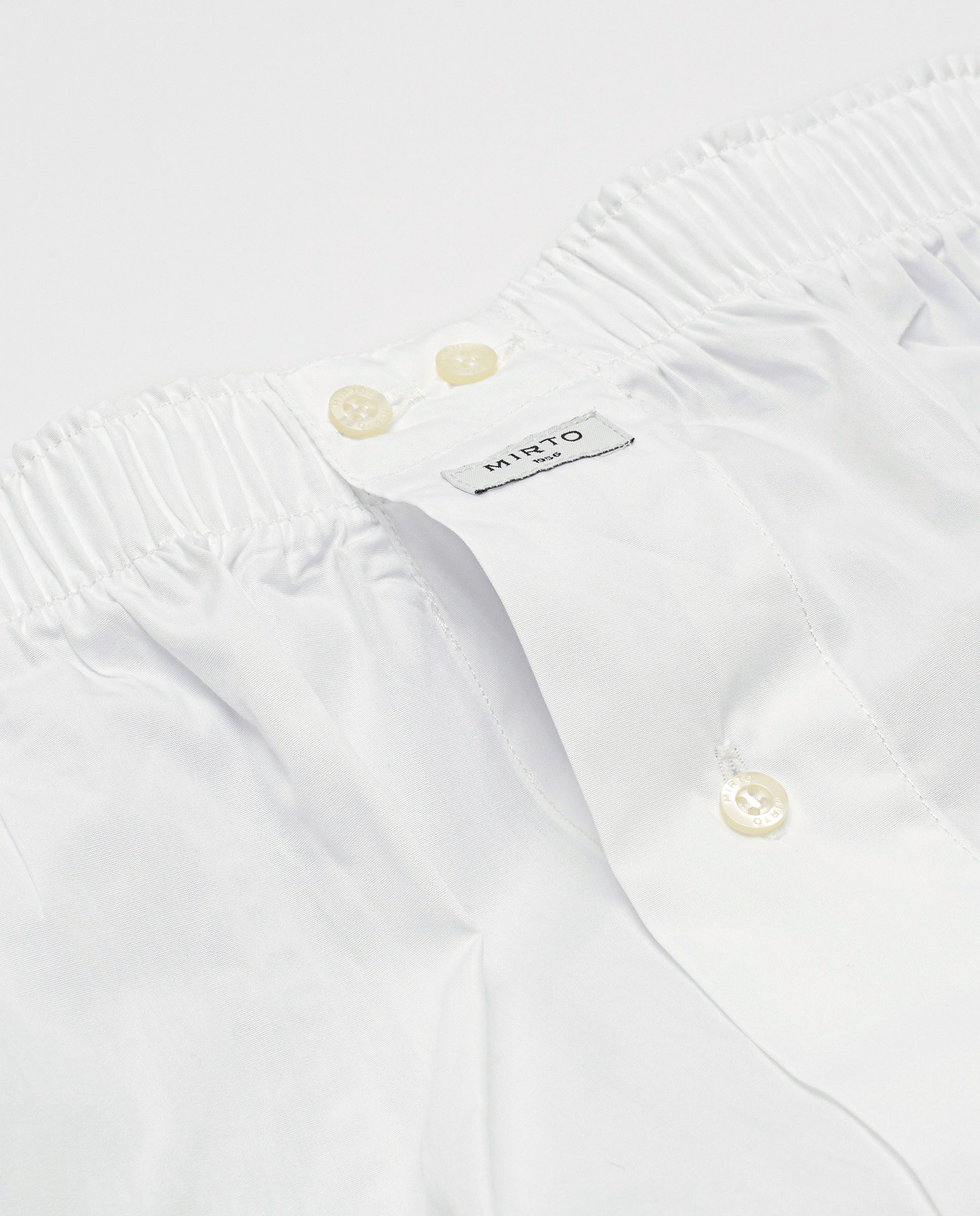 Plain, crisp cotton-poplin white boxer shorts, button fly, elastic and lined waist band for extra comfort.