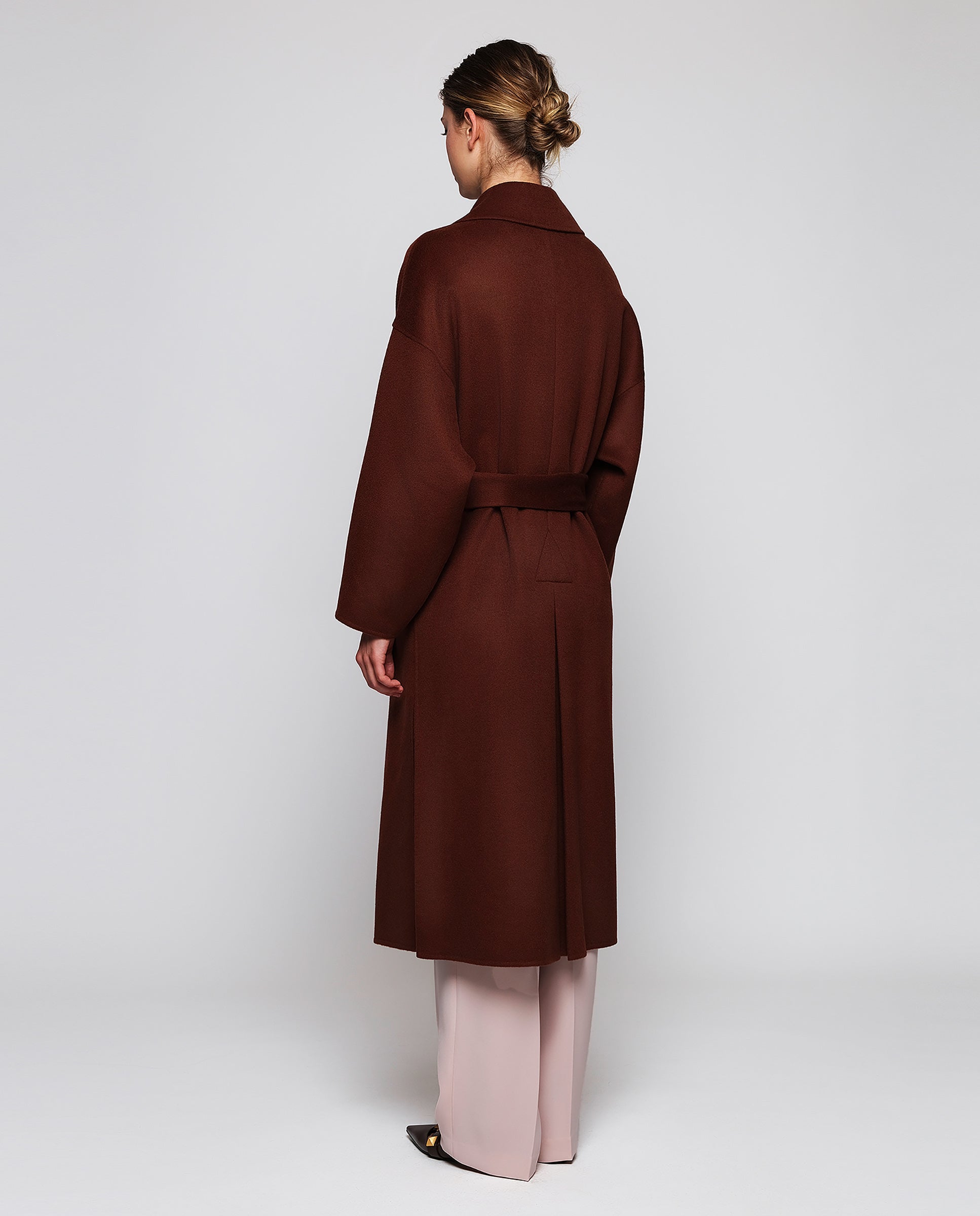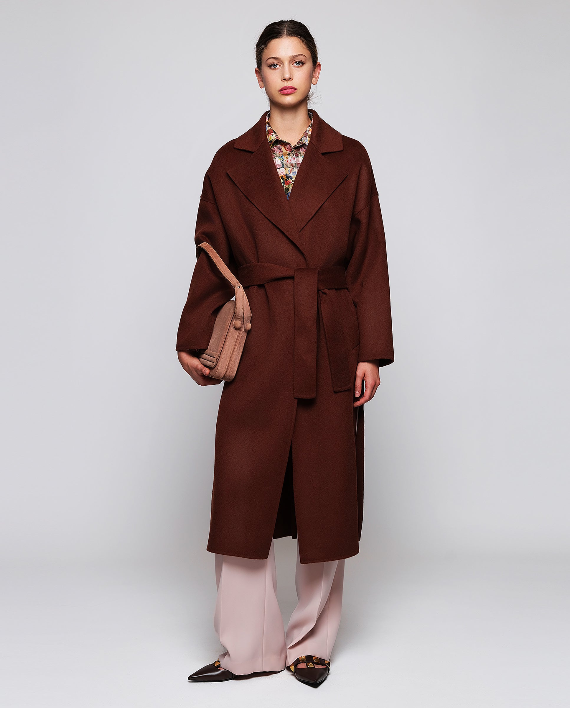 Wrap coat in double-face wool & cashmere, handcrafted artisanally. Collar, lapels, belt fastening in matching fabric & two front pockets. Central back vent. Midi length & straight fit. A sophisticated trend that envelops your style.