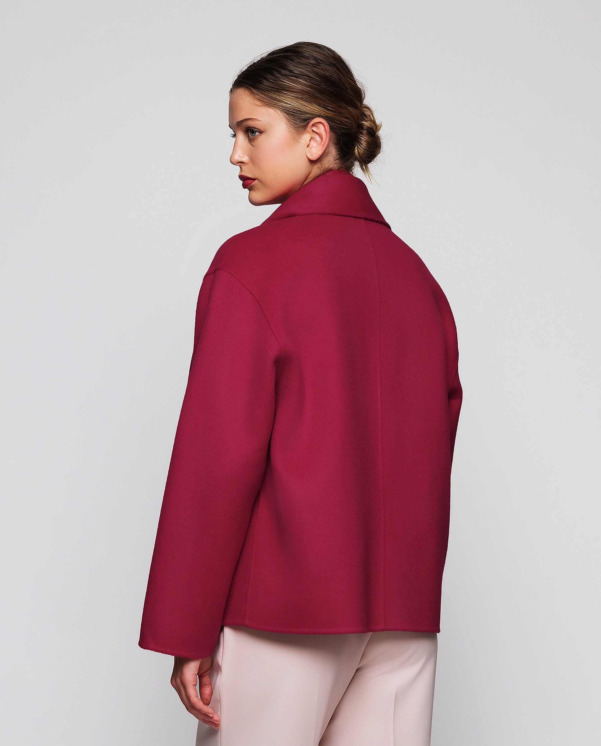 Double-face jacket in cashmere wool handcrafted artisanally. Round neckline with removable scarf, hidden central fastening with lined clip buttons & two side pockets. Transform winter into a subtle luxury experience.