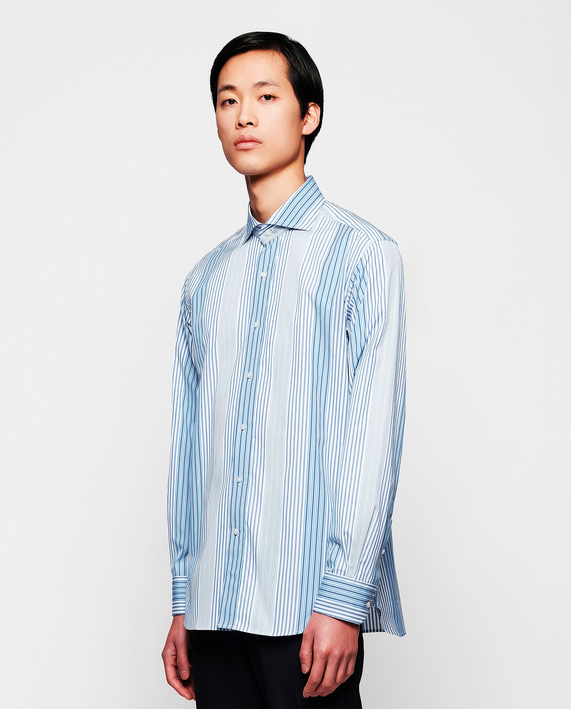 A shirt in positioned tonal stripes reflects exclusive distinction whether you dress in a casual or formal style. Pair with MIRTO range of fashion. 100% cotton striped casual shirt, collar with removable stays, no breast pocket, short sleeves, classic fit.