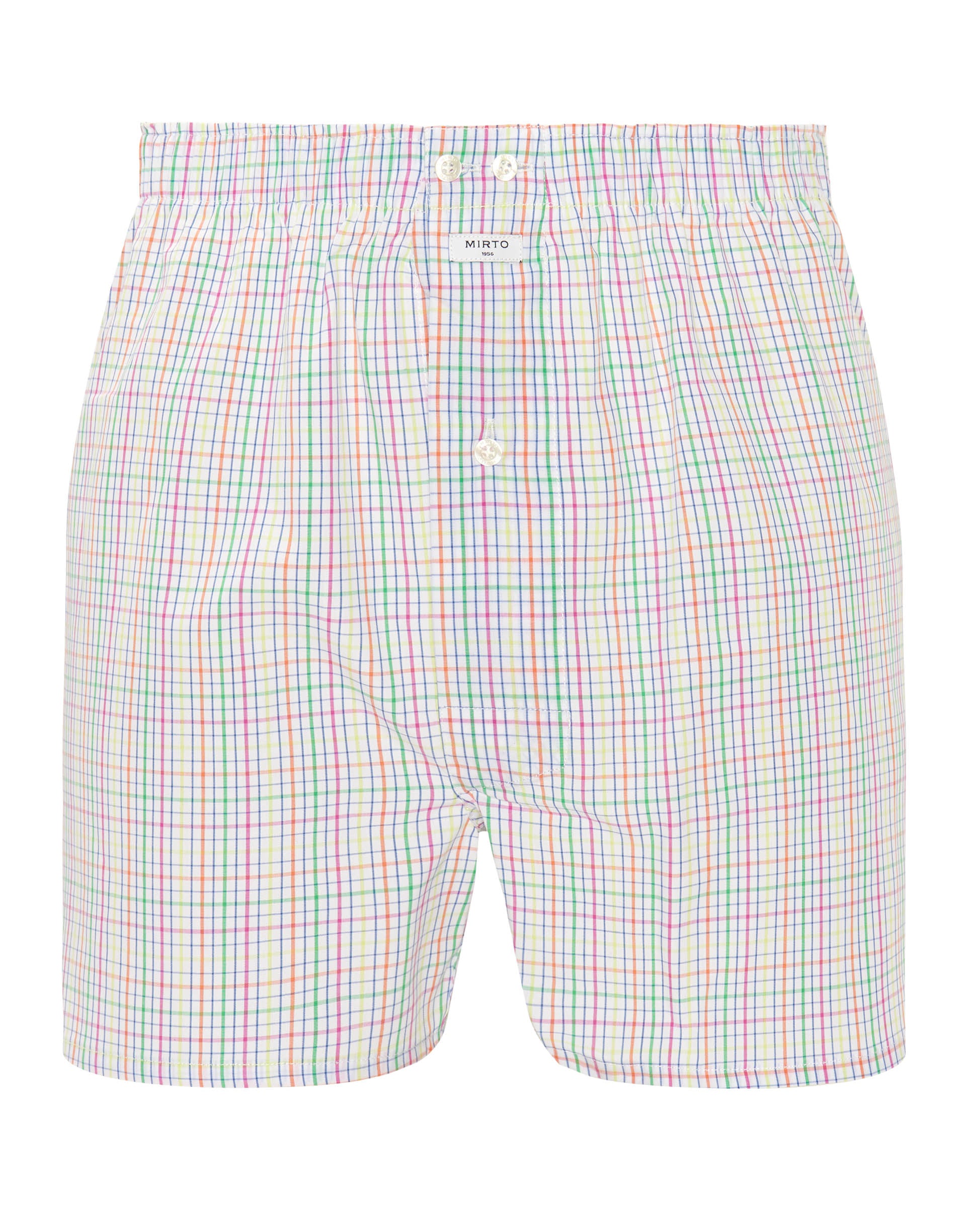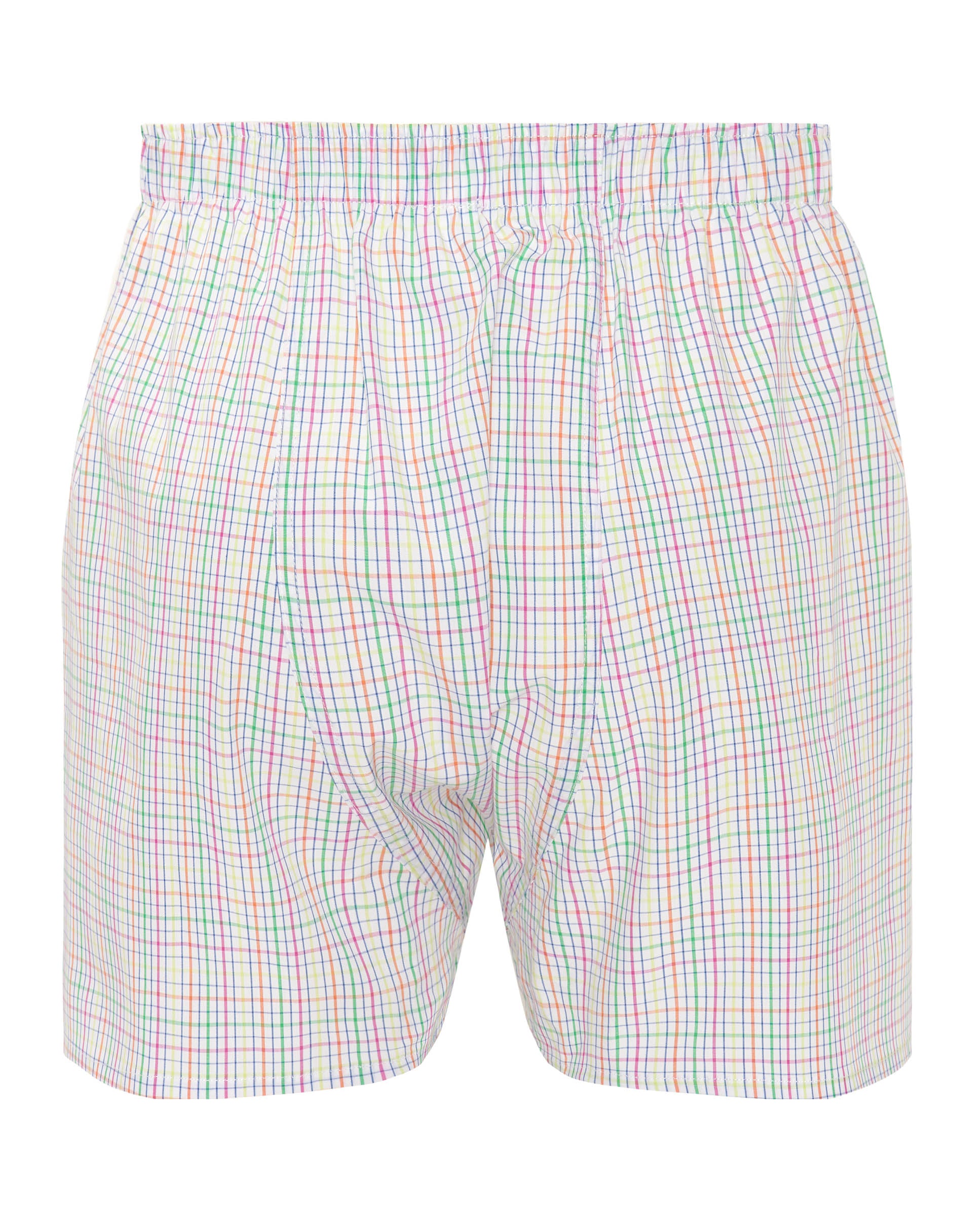 White boxer shorts made of multi-colored checkered fabric