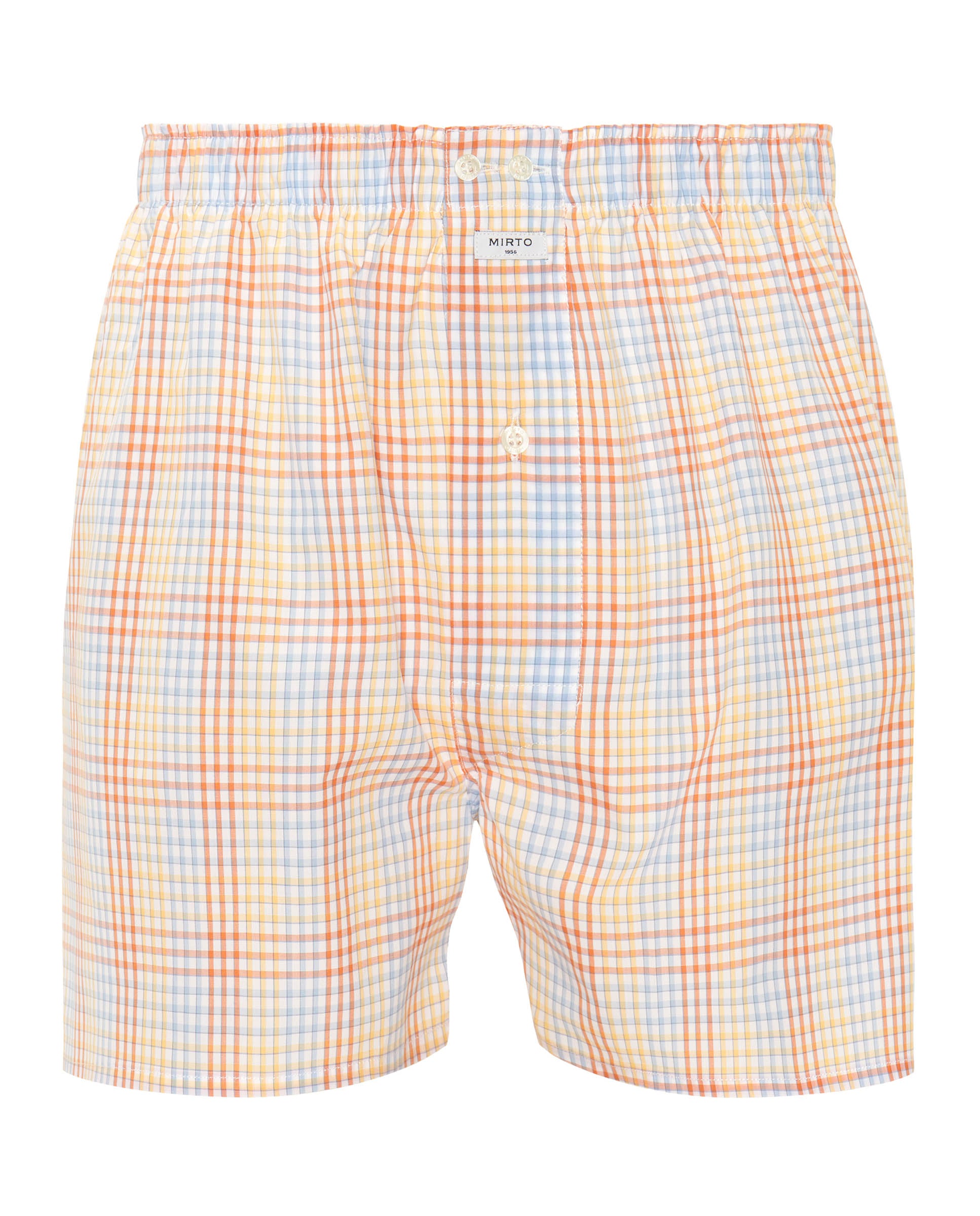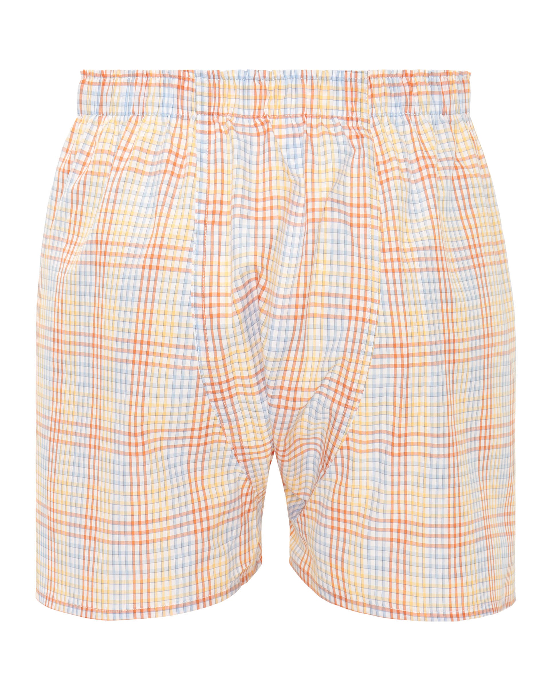 Orange and blue checked fabric boxer shorts