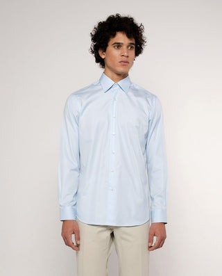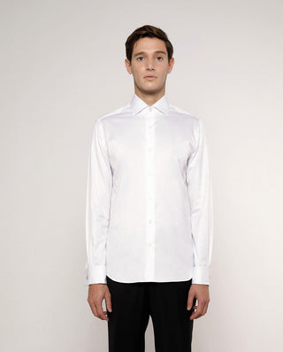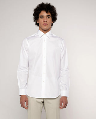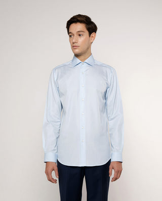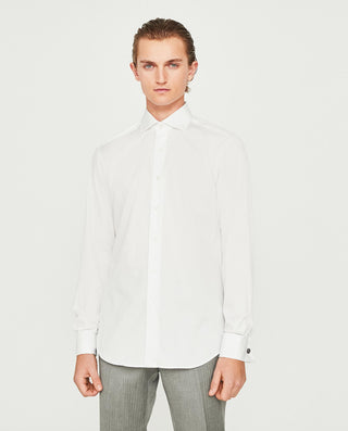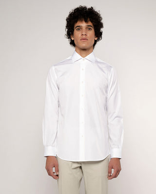 Camisa vestir manga larga de cuadros, 100% algodón con estructura twill, sin bolsillo, cuello italiano con varillas extraíbles, y puños con doble ojal para usarla tambien con gemelos. Classic Fit.