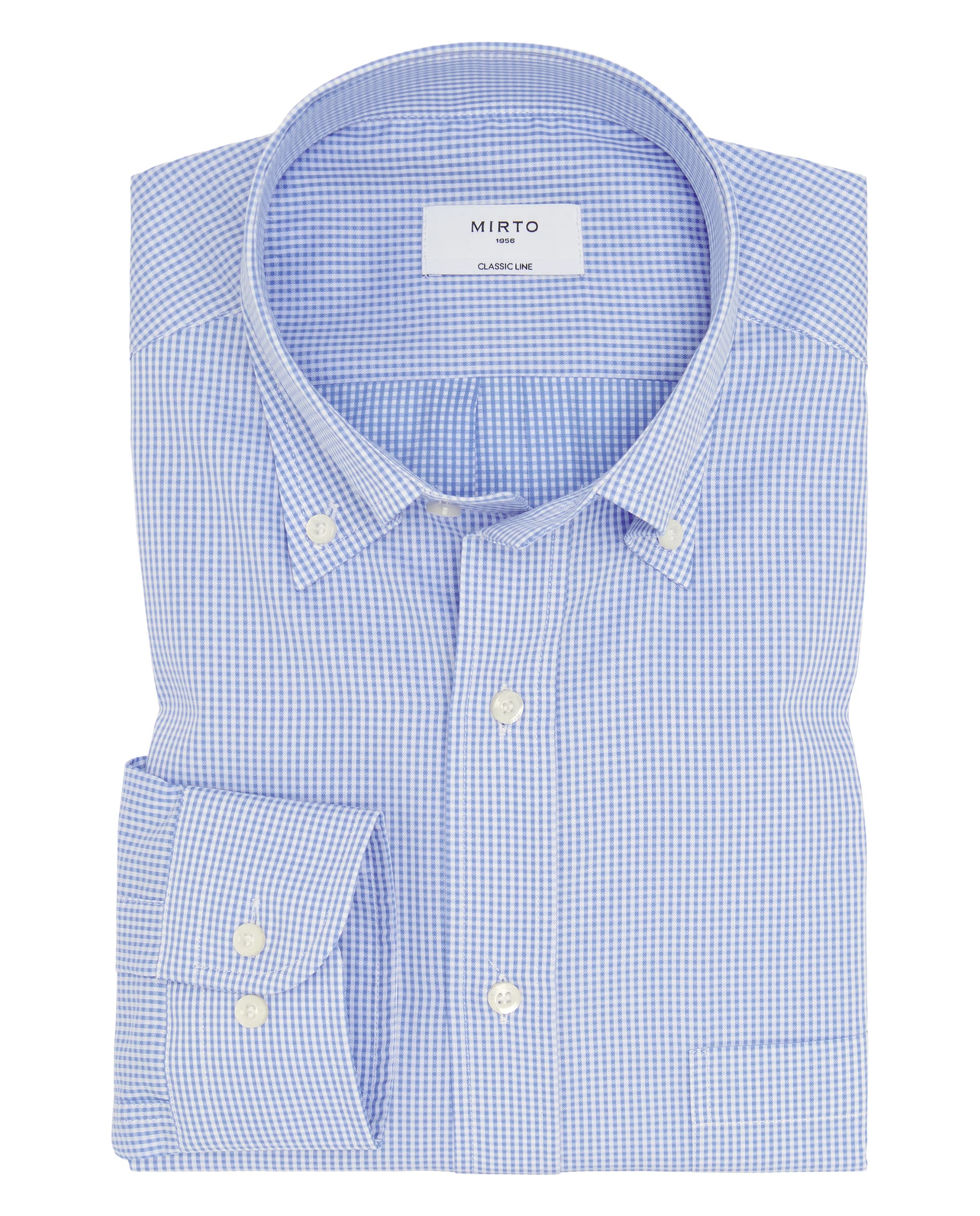 100% cotton micro plaid dress shirt, button collar, breast pocket, long sleeves, cuffs with double button, classic fit.