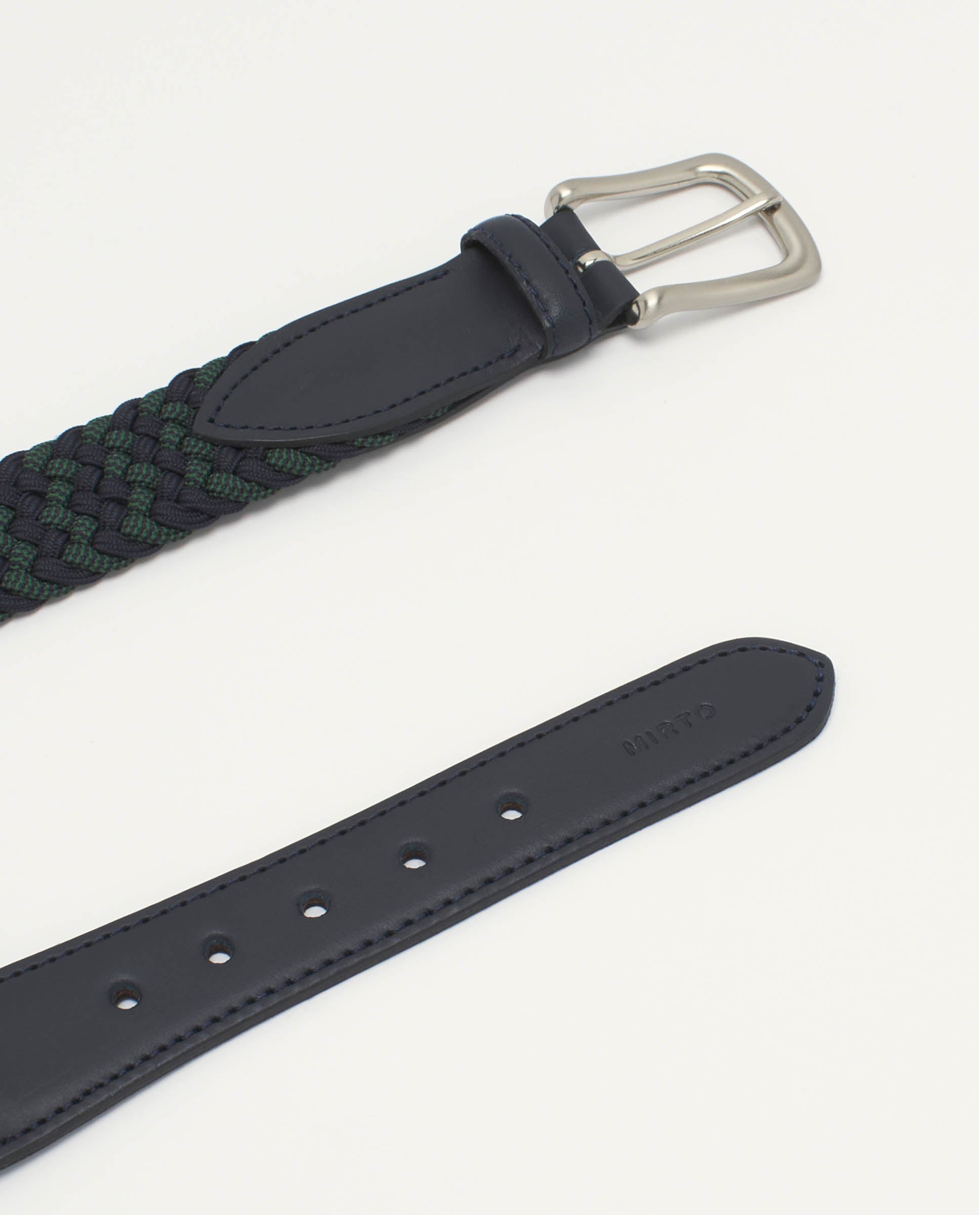Braided belt. Matching leather toe and buckle, nickel-colored buckle. 35 mm high. Made in Spain.