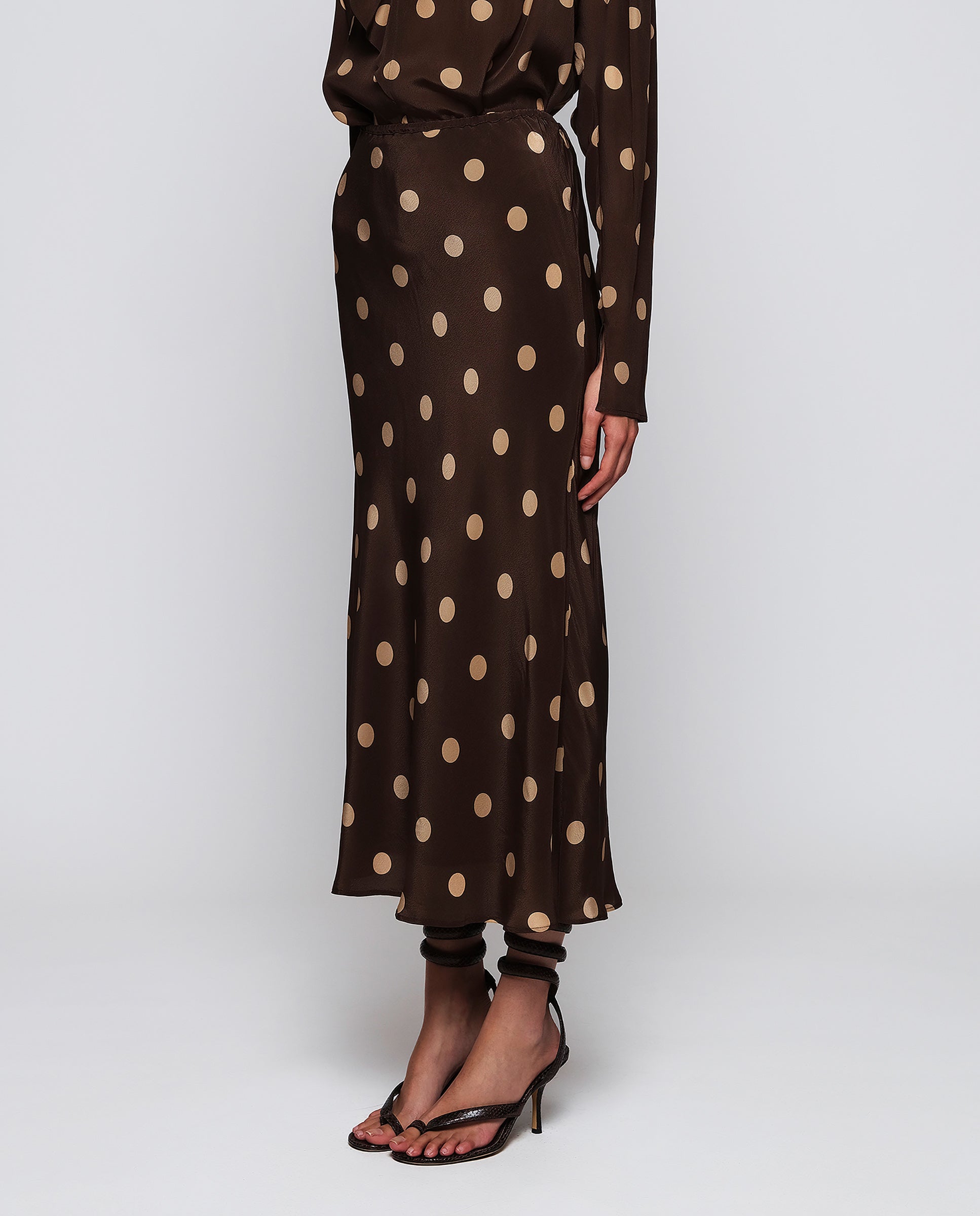 Midi skirt, dot print, bias-cut. Elastic waistband. Includes midi slip skirt with elastic. Fluid fit with flare. Dot print in harmony with the flattering bias cut. Rhythmic elegance with every movement.
