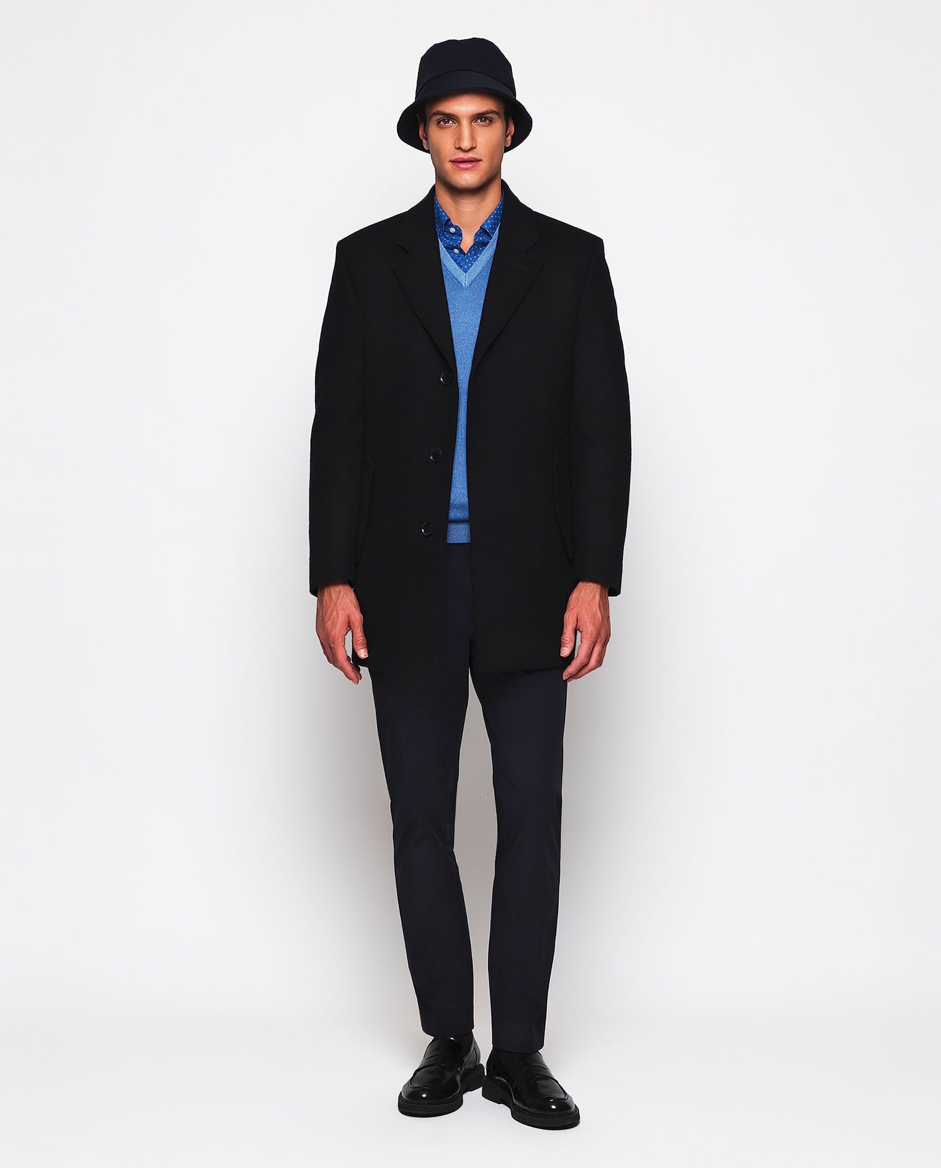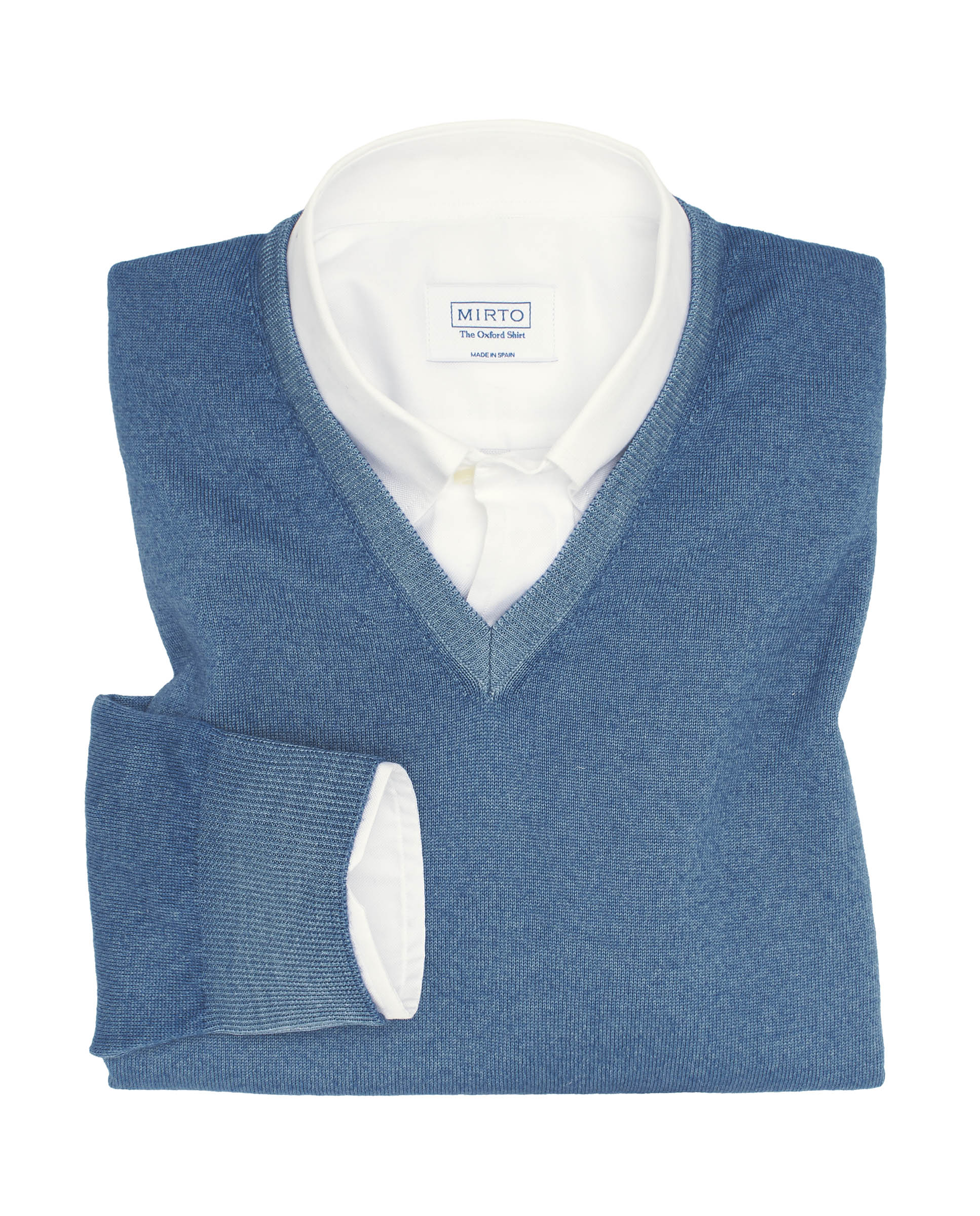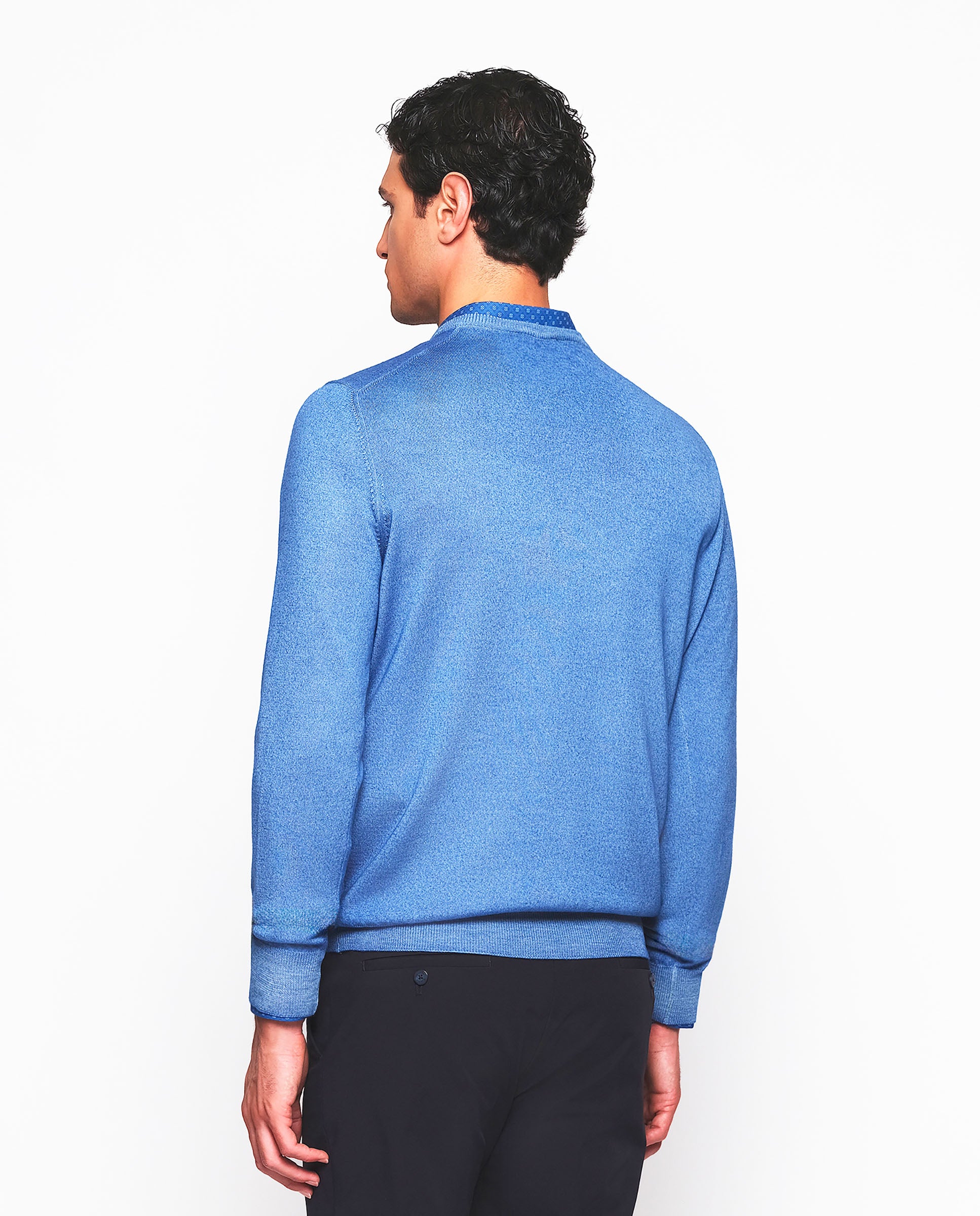 Knit jumper with V-neck in 100% washed merino wool. Ribbed collar, cuffs, and hem feature a subtle distressed effect. Combining premium softness with urban edge, it?s the perfect statement piece for modern casual wear.