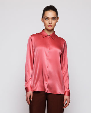 Blusa beige cuadros negros de organza seda y lana. Cuello con lazada extraíble, cierre central con botones, manga larga ligeramente abullonada con puño. Top lencero interior. Fit recto. La levedad transformadora de la elegancia adaptada a tus estilos.