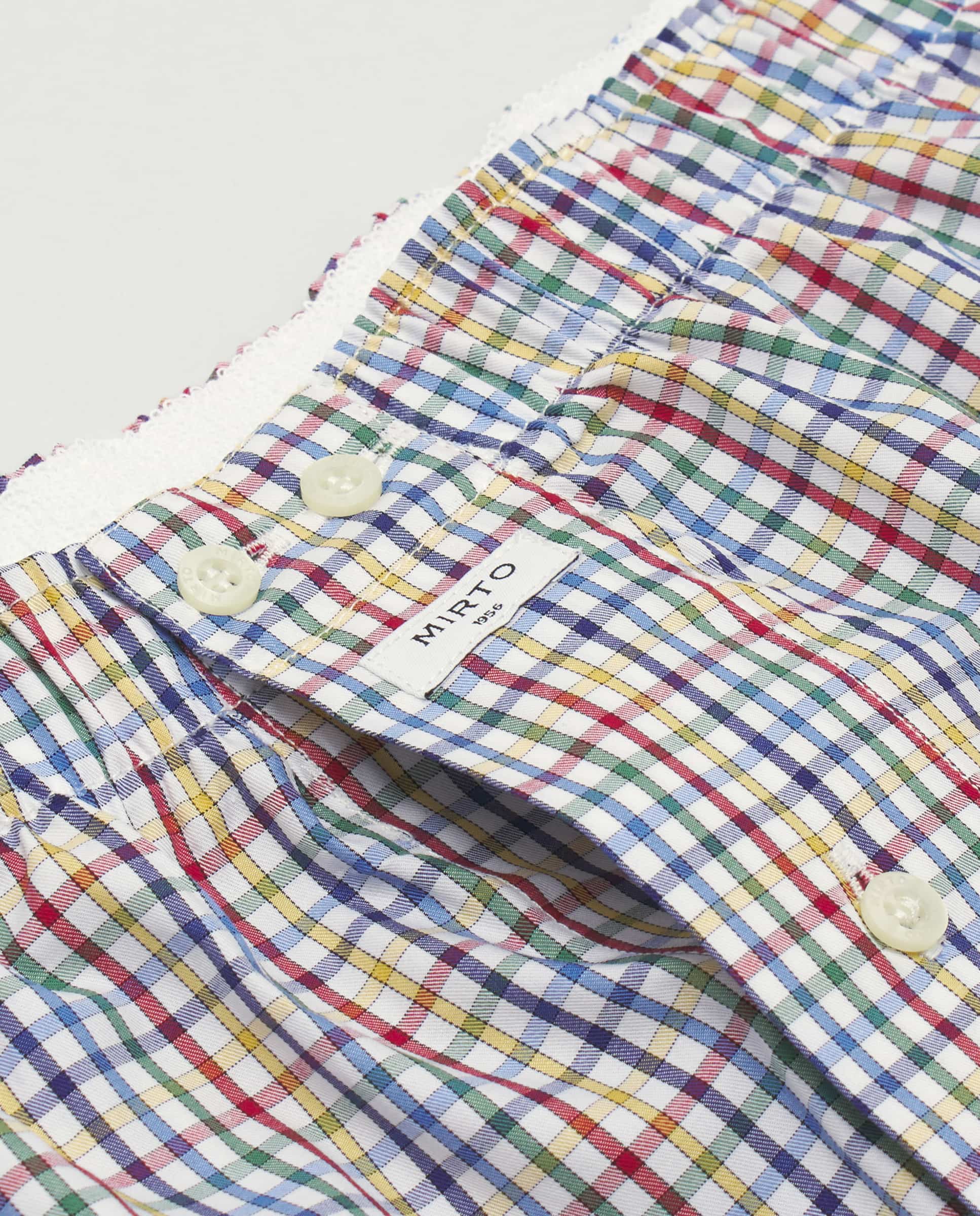 Bóxer de tela 100% algodón, abertura con botón, el interior de la cintura forrada de felpa para un mayor confort. La parte trasera tiene costura americana.