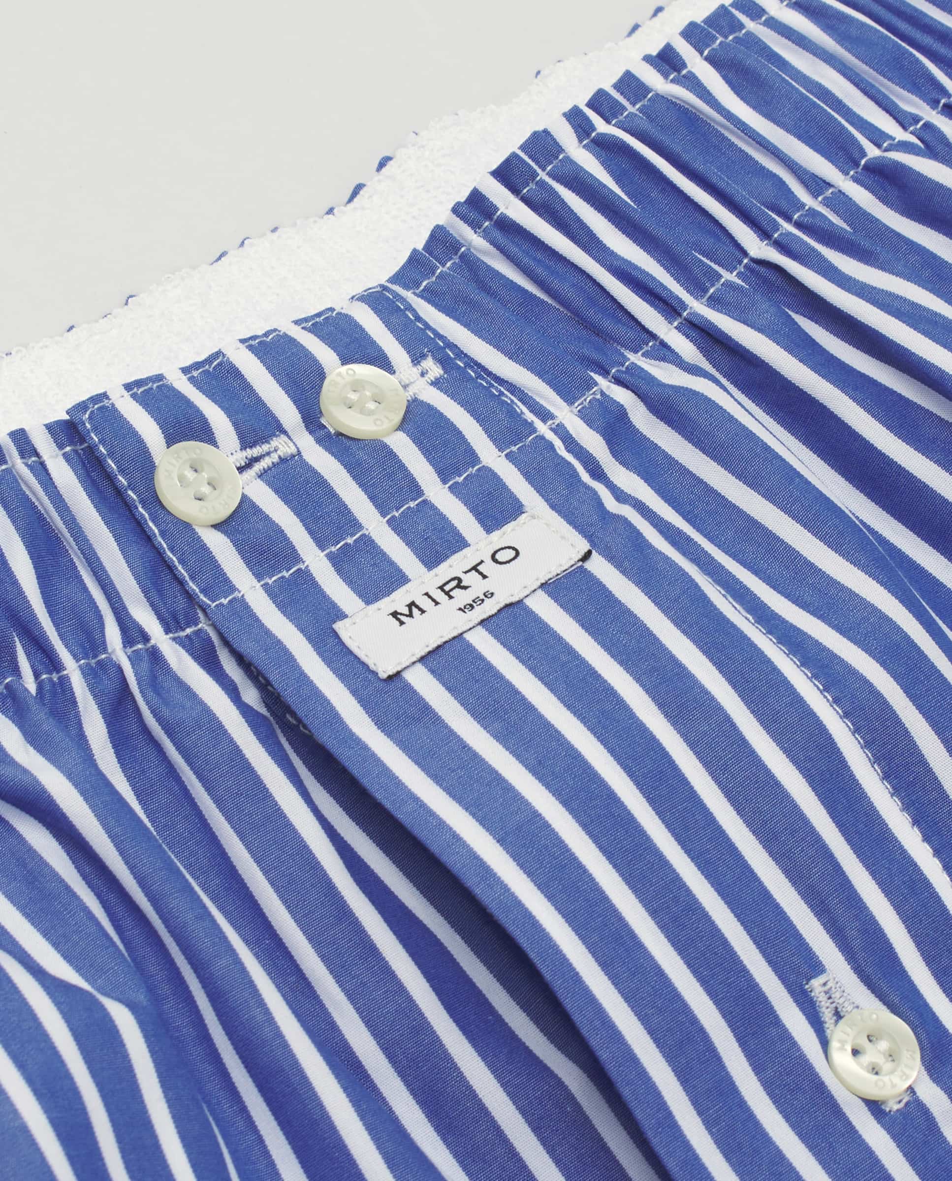Bóxer de tela 100% algodón, abertura con botón, el interior de la cintura forrada de felpa para un mayor confort. La parte trasera tiene costura americana.