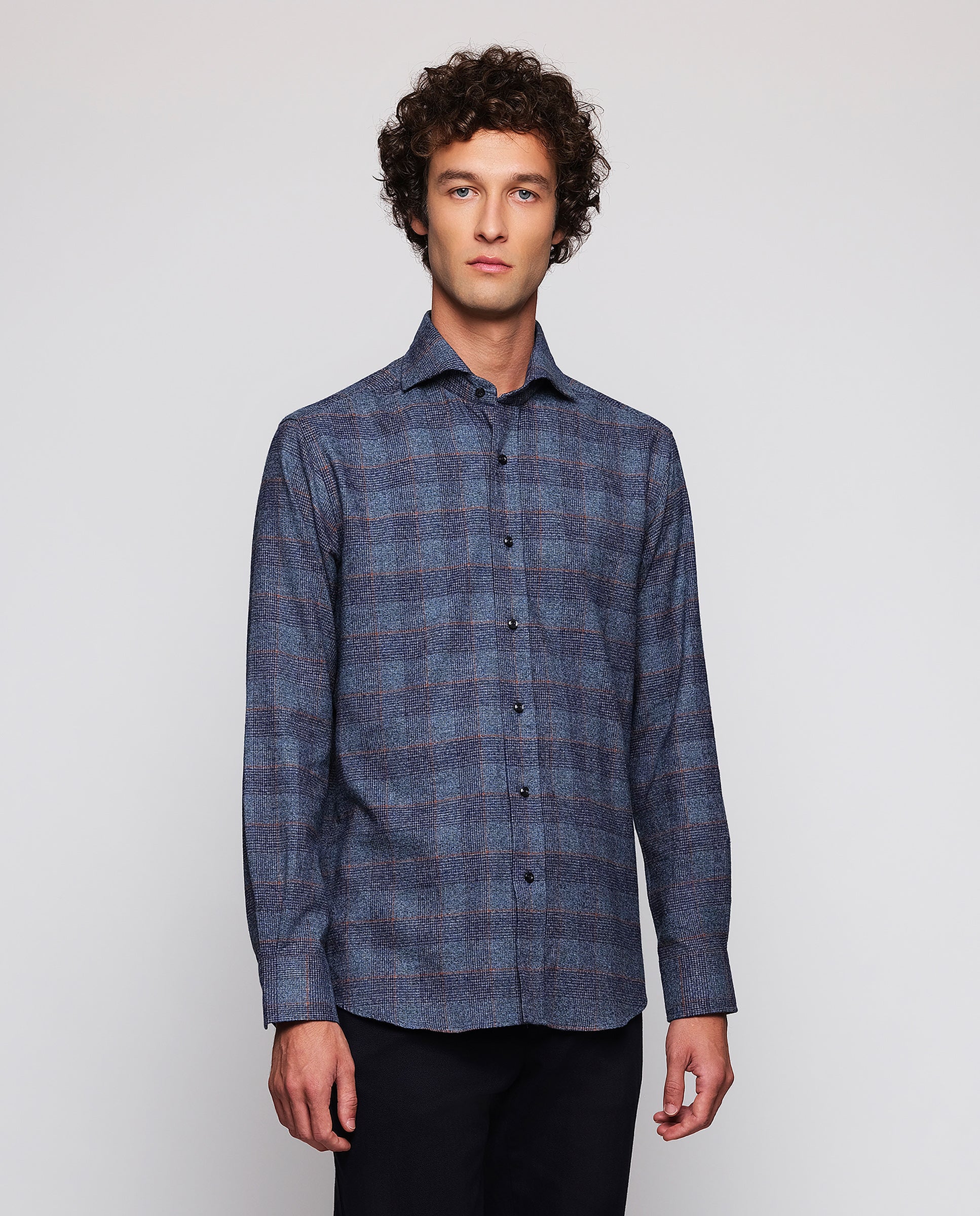 Camisa casual de cuadros 100% algodón con estructura twill e hilatura melange, cuello italiano con varillas extraíbles, sin bolsillo, manga larga, puño con doble botón, classic fit. Experimenta la calidez de las camisas a cuadros, evocan ambientes otoñales