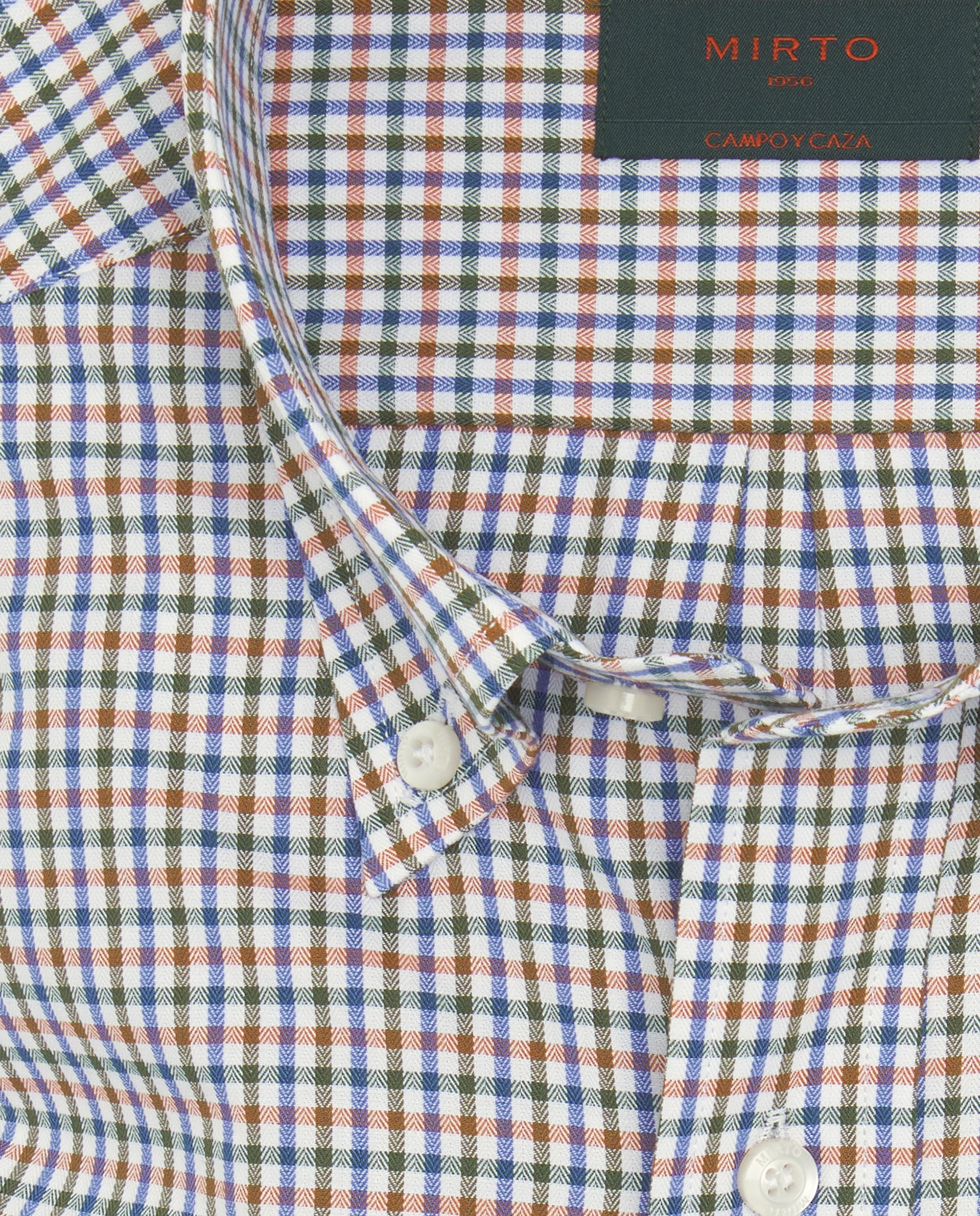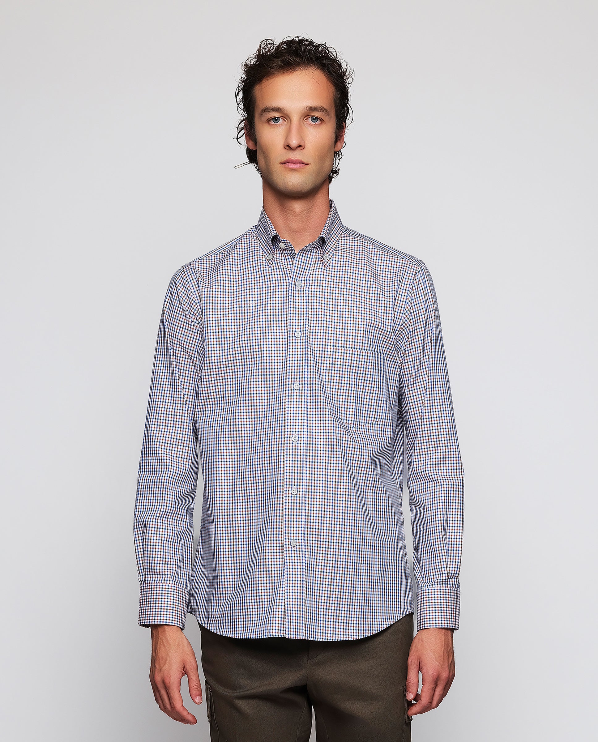 Camisa casual manga larga, con bolsillo, 100% Algodón con estructura twill, cuello con botones y espalda con tablón central.