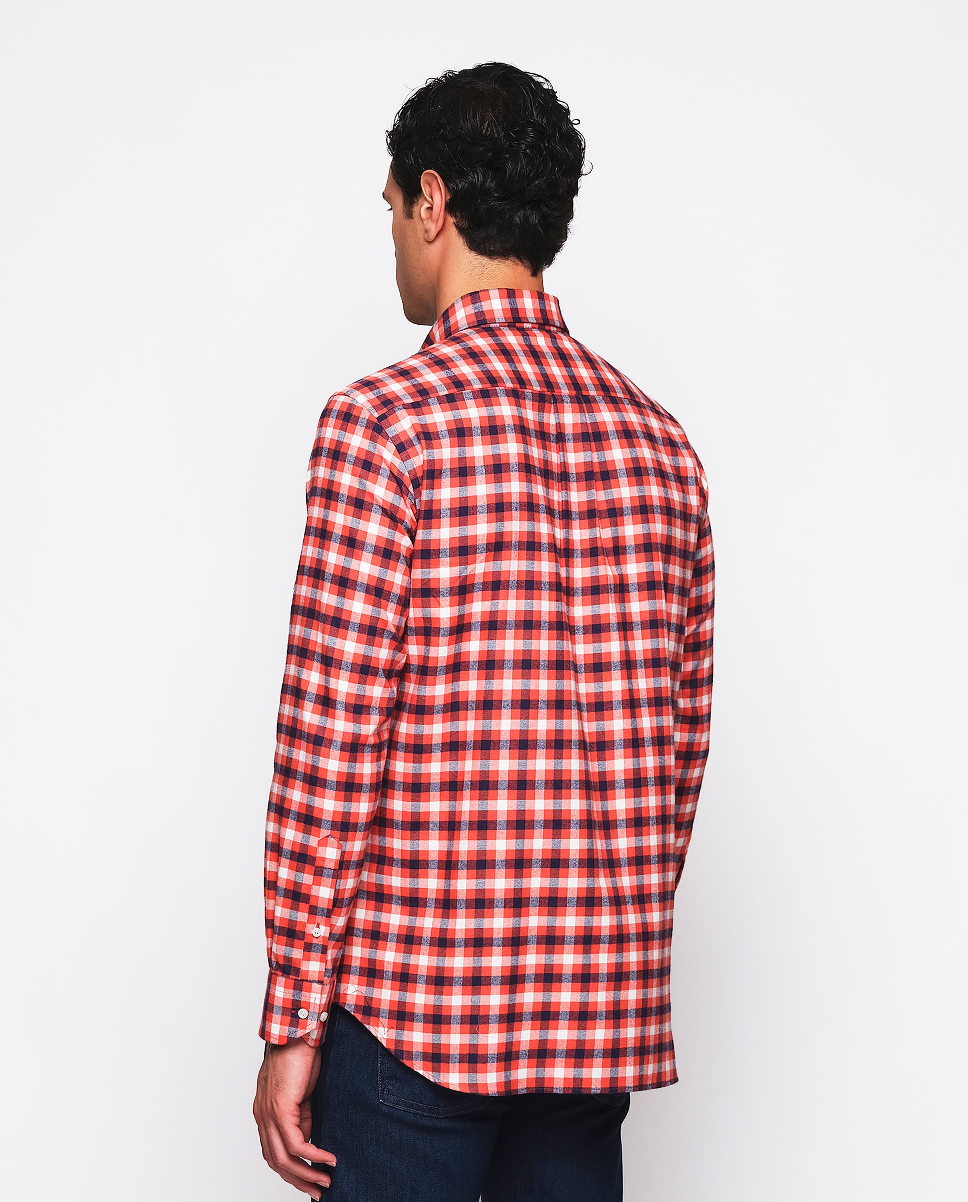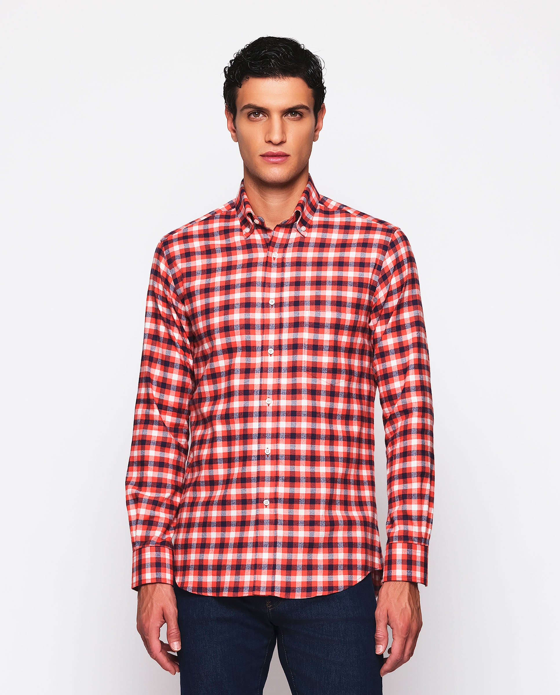 Camisa casual de cuadros 100% algodón de franela, cuello con botones, bolsillo en pecho, manga larga, puño con doble botón, classic fit. Apuesta por la franela e ilumina la temporada con la alegría de colores tartán.