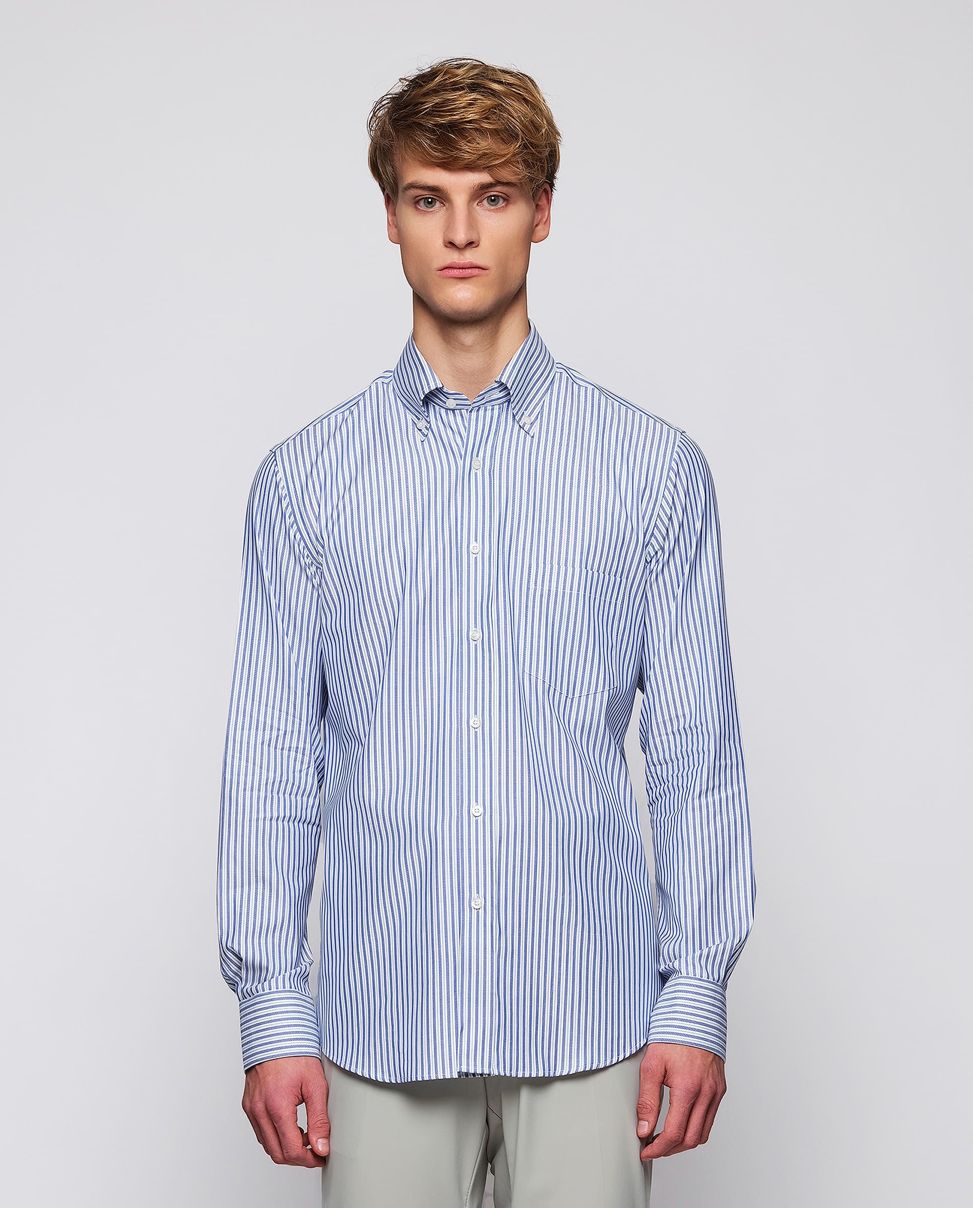 Camisa casual rayas 100% algodón con estructura pinpoint, cuello con botones, con bolsillo, manga larga, puño con doble botón, classic fit.