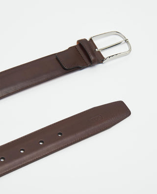 Cinturón liso de piel, 35 milímetros de alto y hebilla color níquel con brillo en forma de herradura. Pasador de piel al tono. Perfecto para todos los looks, tanto los de la oficina como los casual urbanos de pantalones de sport y americana.
