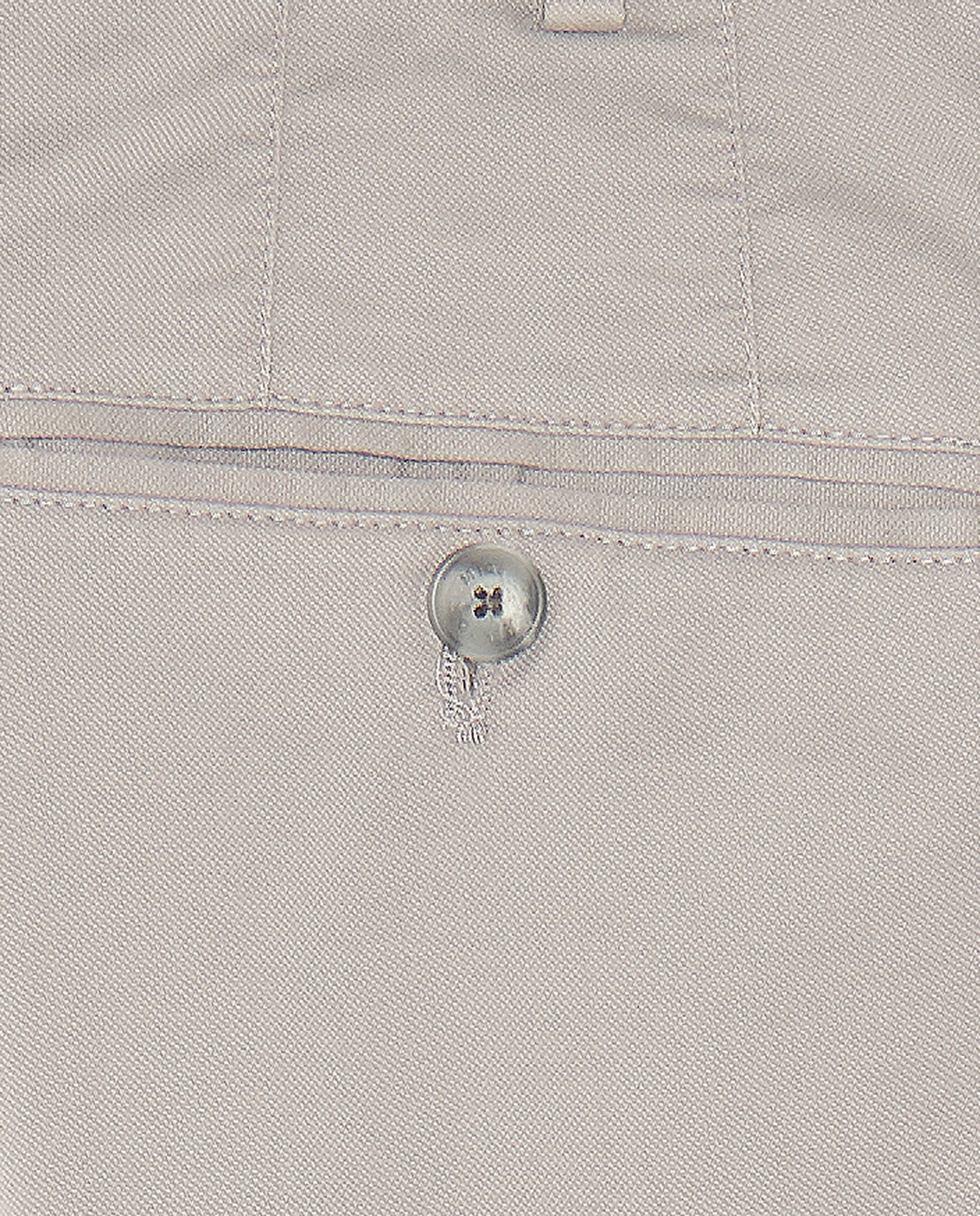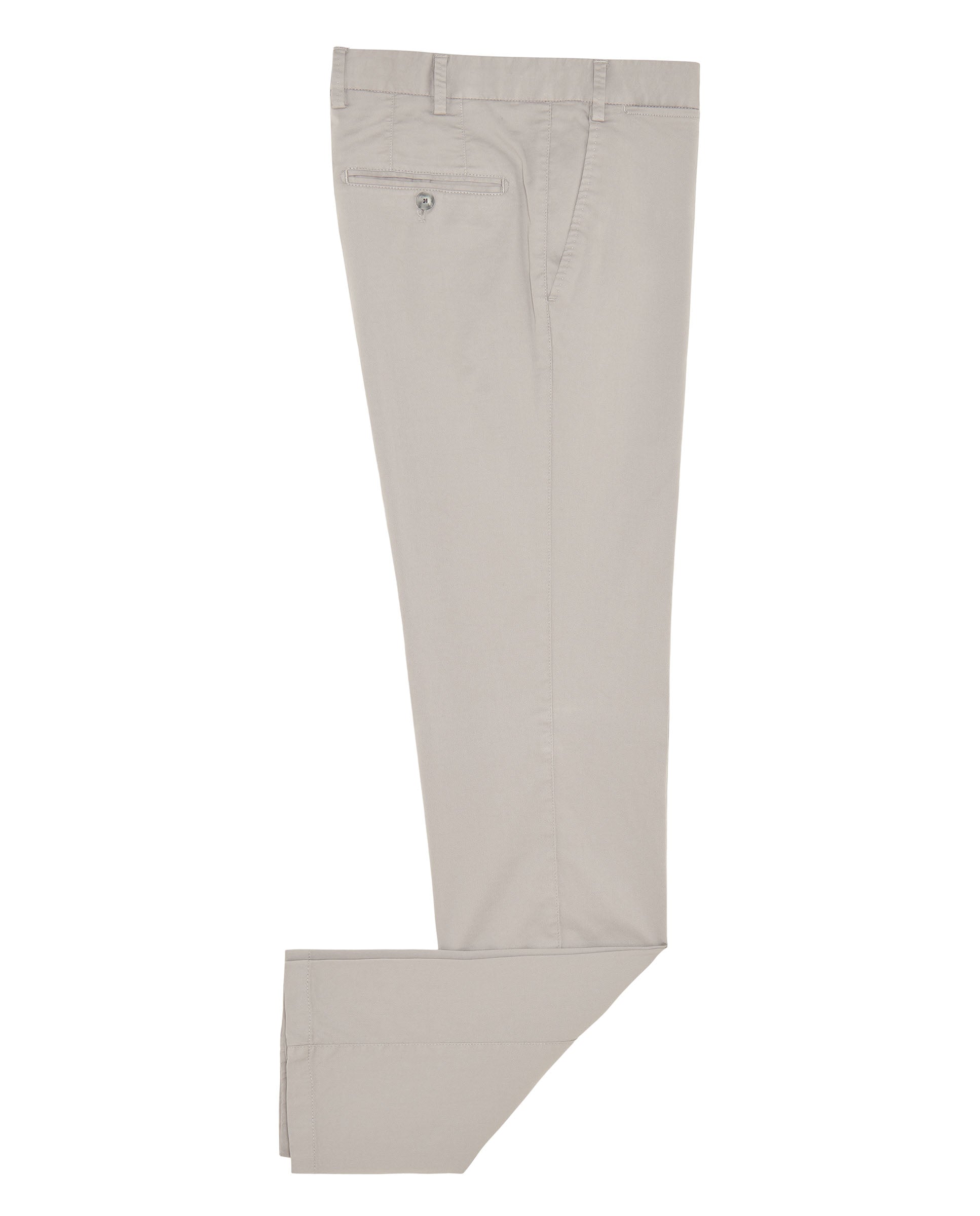Pantalón chino gris claro en algodón stretch.Custom fit, sin pinza, bolsillo francés. Cierre sartorial, botón personalizado y detalle interior en tejido camisero. Prenda versatil, ideal para completar loooks