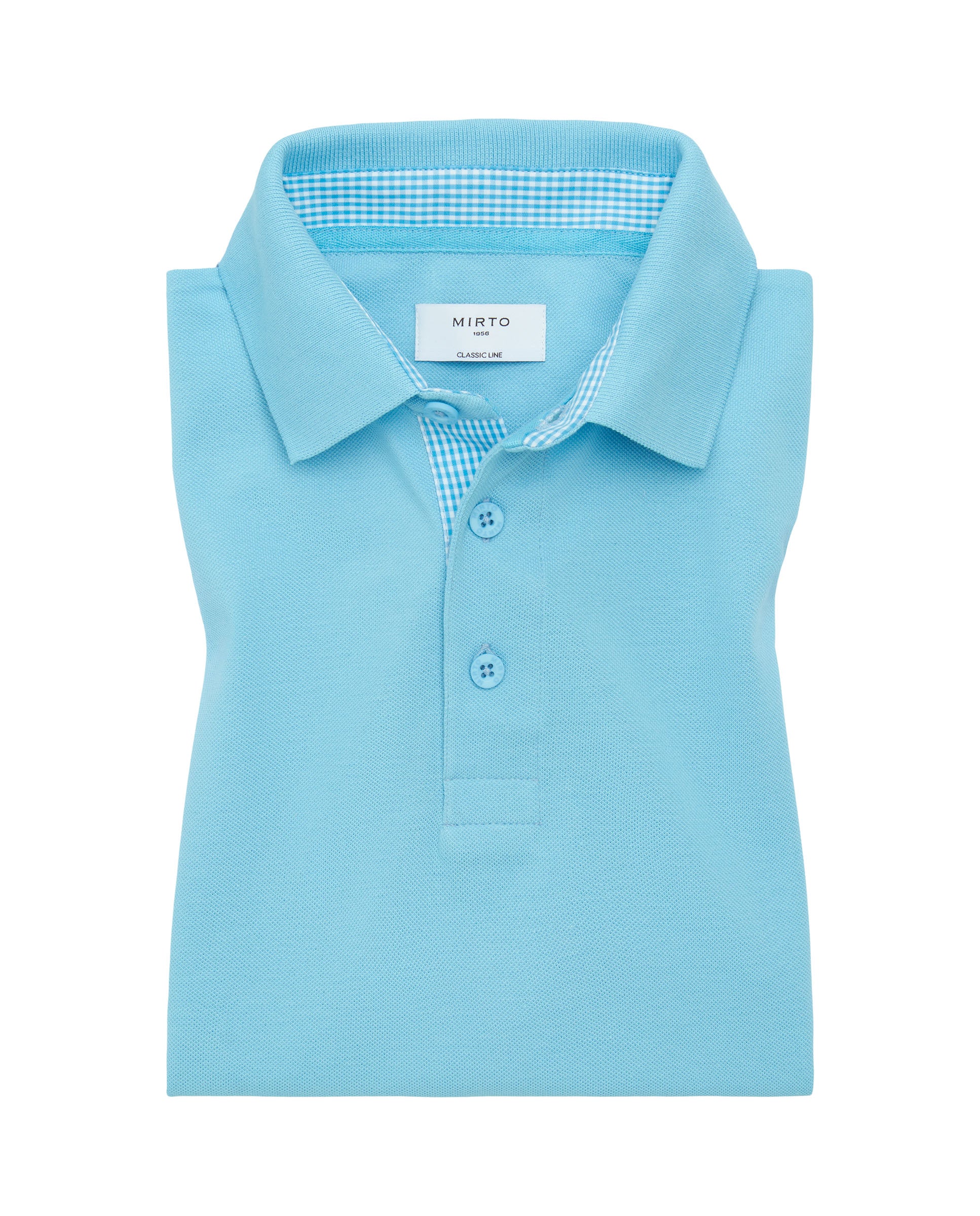 Polo manga corta sin bolsillo,100%algodón de piqué, cuello polo, aplique de cuadros vichy al tono en tira interior de cuello y tapeta de botones. Mangas con elásticos al tono.